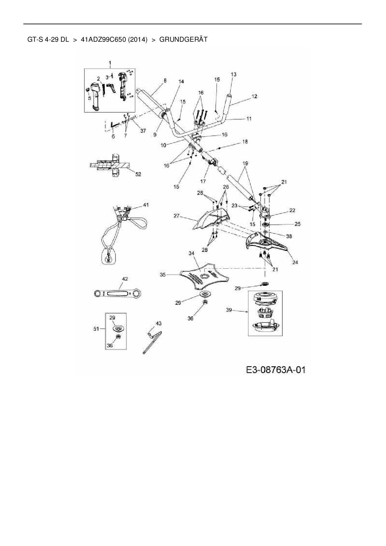 Zeichnung für Wolf-Garten Motorsense GT-S 4-29 DL mit der Geräte-Artikelnr. 41ADZ99C650 ab Baujahr 2014: