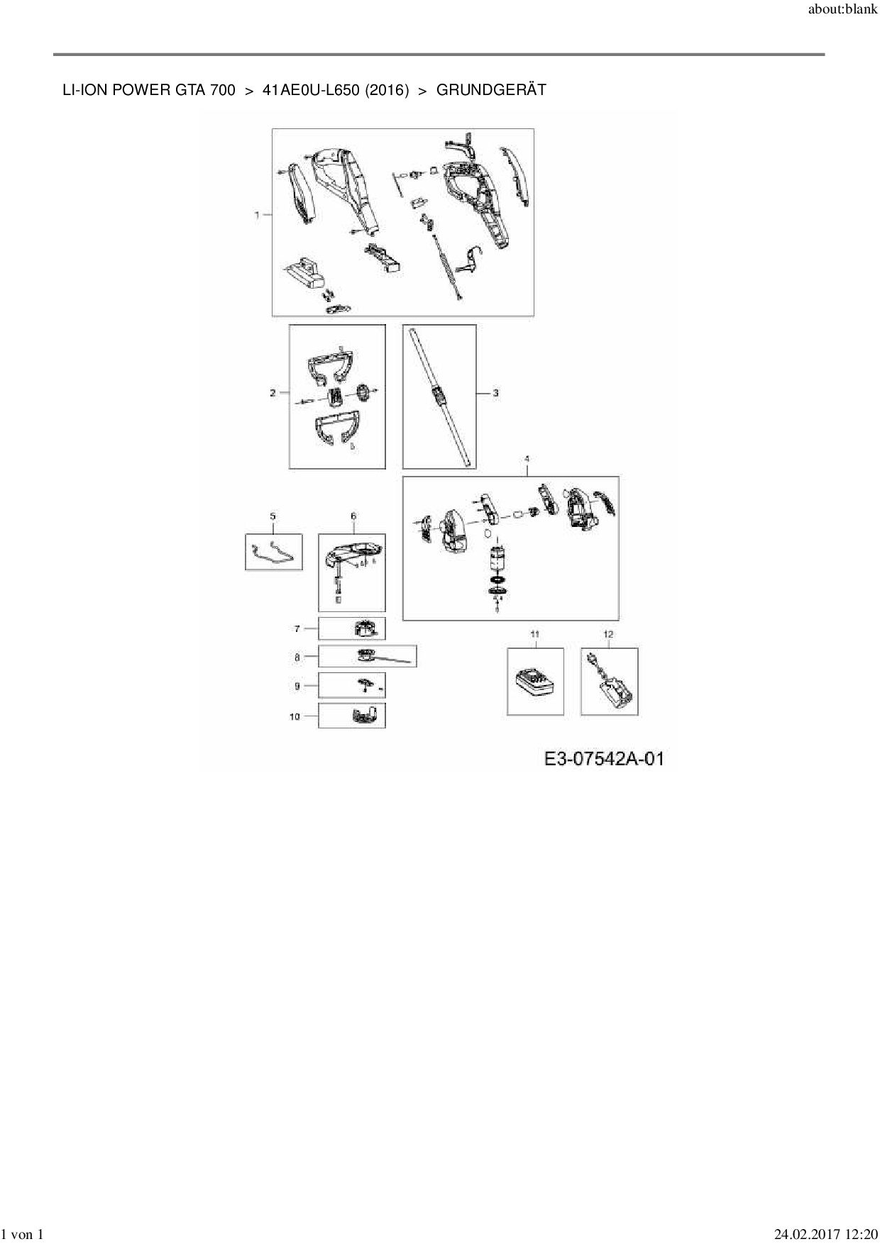 Download Ersatzteil-Zeichnung Wolf-Garten Li-Ion Power GTA 700 Zeichnung Grundgerät (PDF-Format)