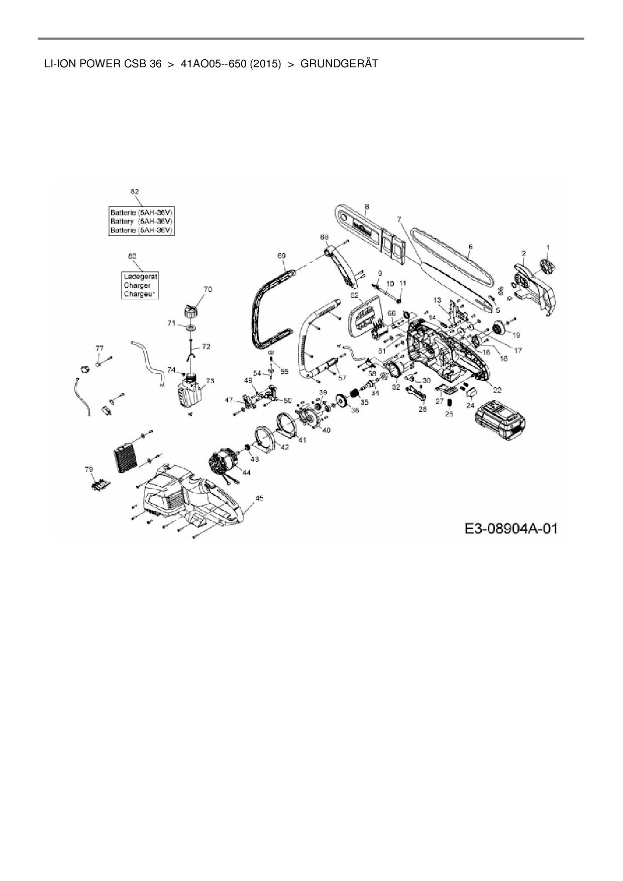Ersatzteile für Akkukettensäge Wolf-Garten Li-Ion Power CSB 36 aus der Zeichnung Grundgerät: