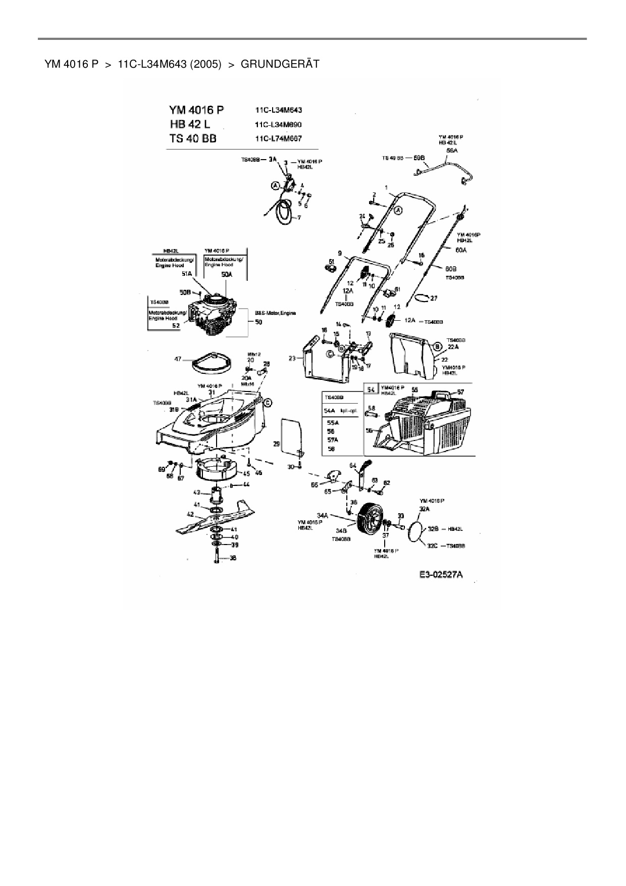 Die Ersatzteil-Zeichnung für Motormäher Yard-Man YM 4016 P als Download:
