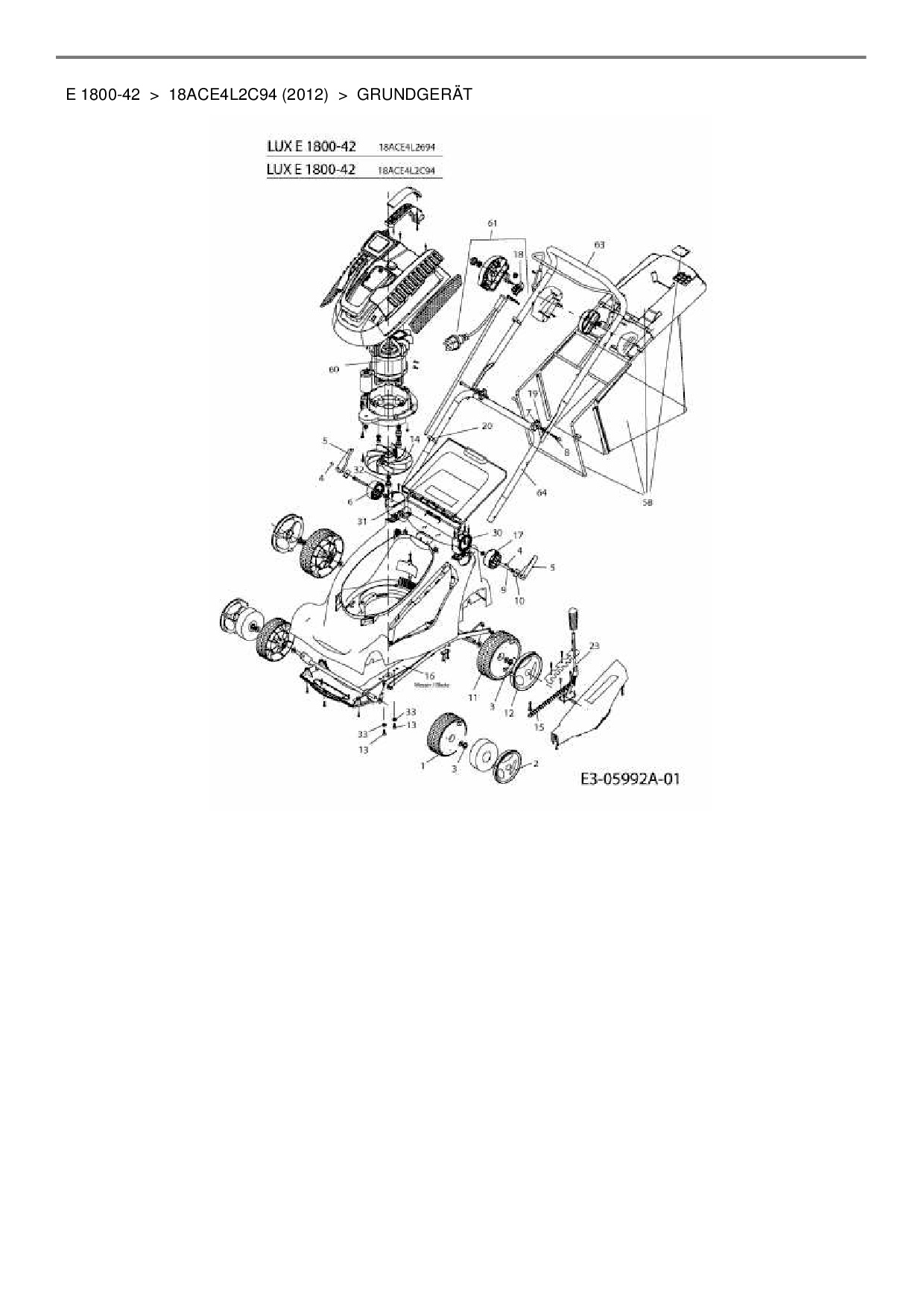 Ersatzteile für Elektromäher Lux Tools E 1800-42 aus der Zeichnung Grundgerät: