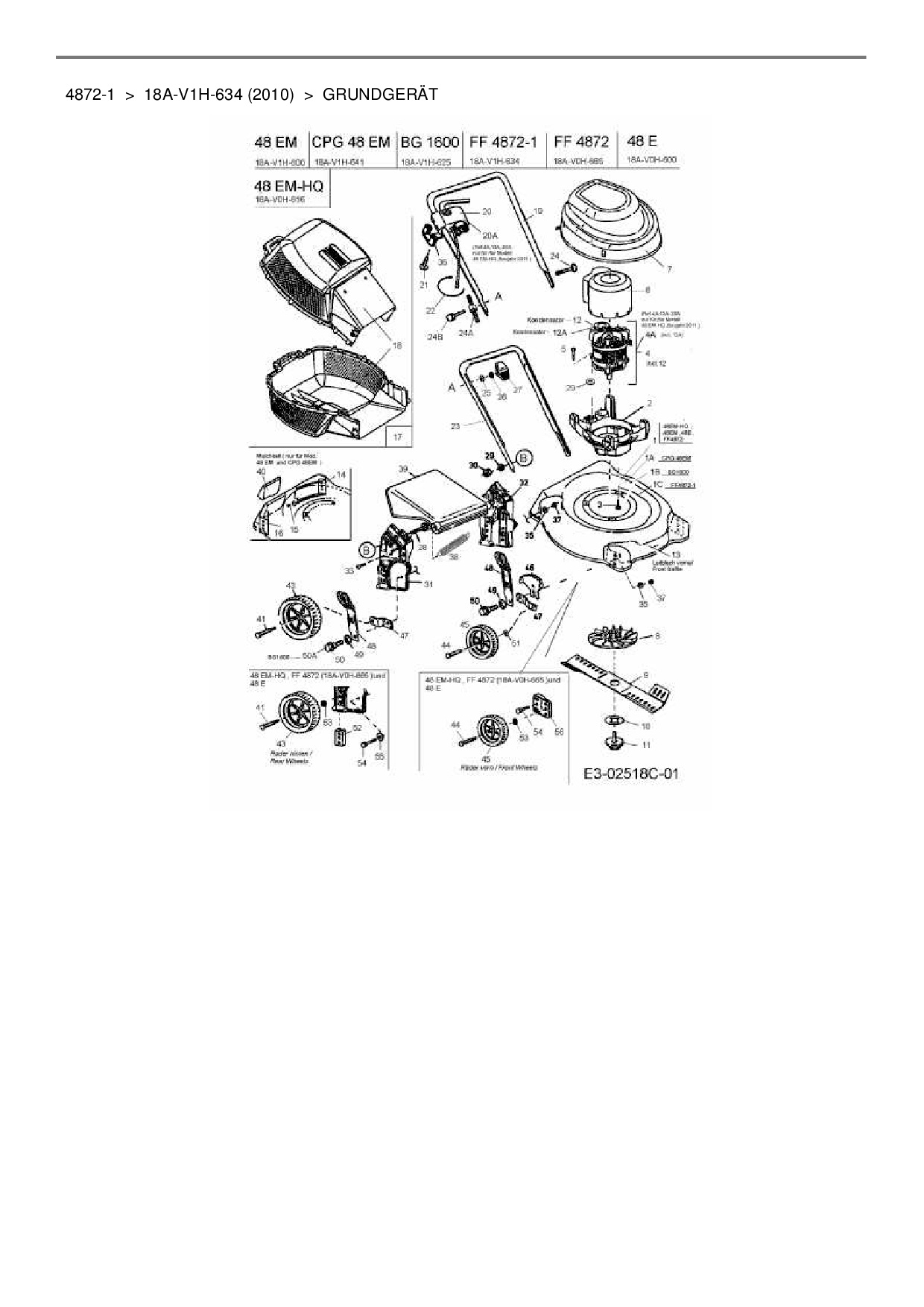 Zeichnung für MTD Elektromäher 4872-1 mit der Geräte-Artikelnr. 18A-V1H-634 ab Baujahr 2010: