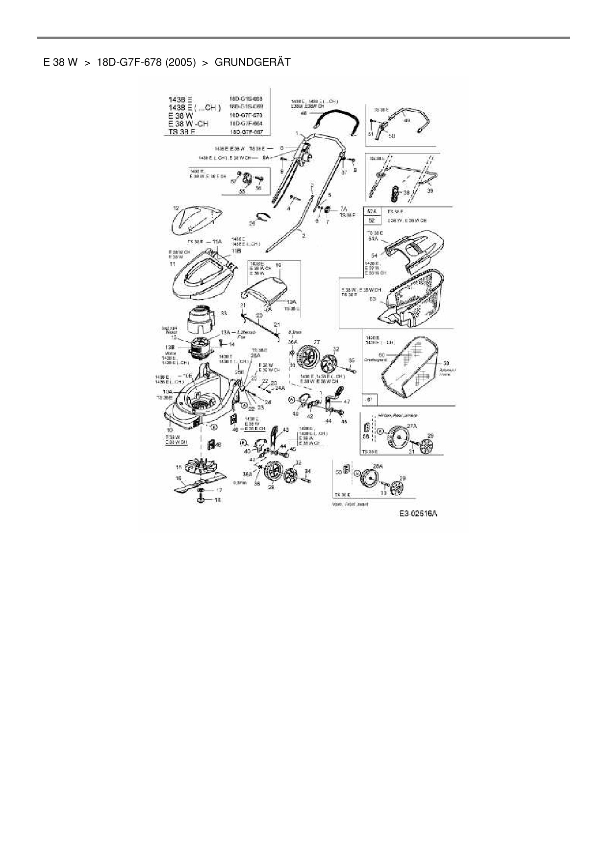 Ersatzteile für Elektromäher MTD E 38 W aus der Zeichnung Grundgerät: