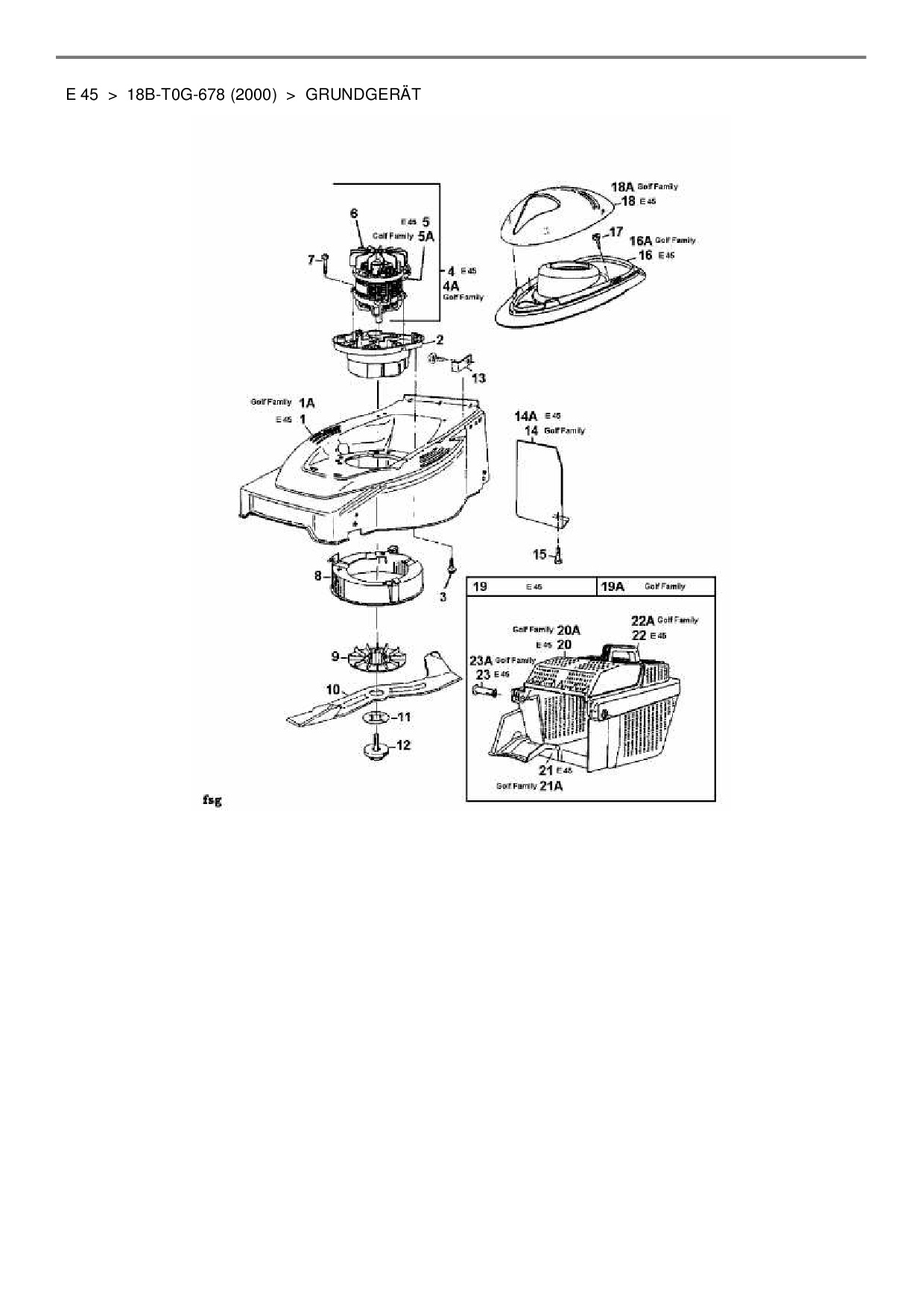 Ersatzteile für Elektromäher MTD E 45 aus der Zeichnung Grundgerät: