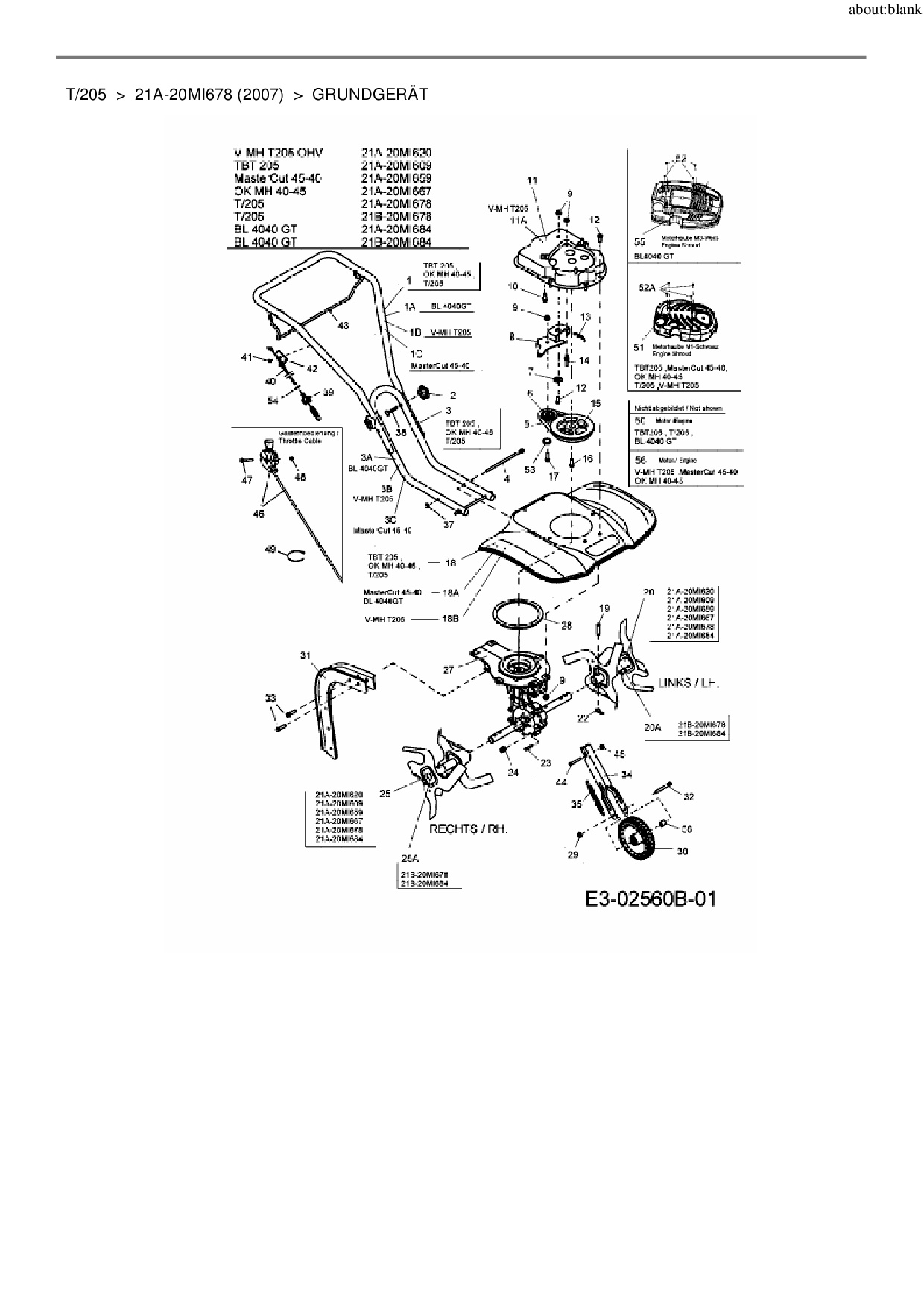 Ersatzteile für Motorhacke MTD T/205 aus der Zeichnung Grundgerät: