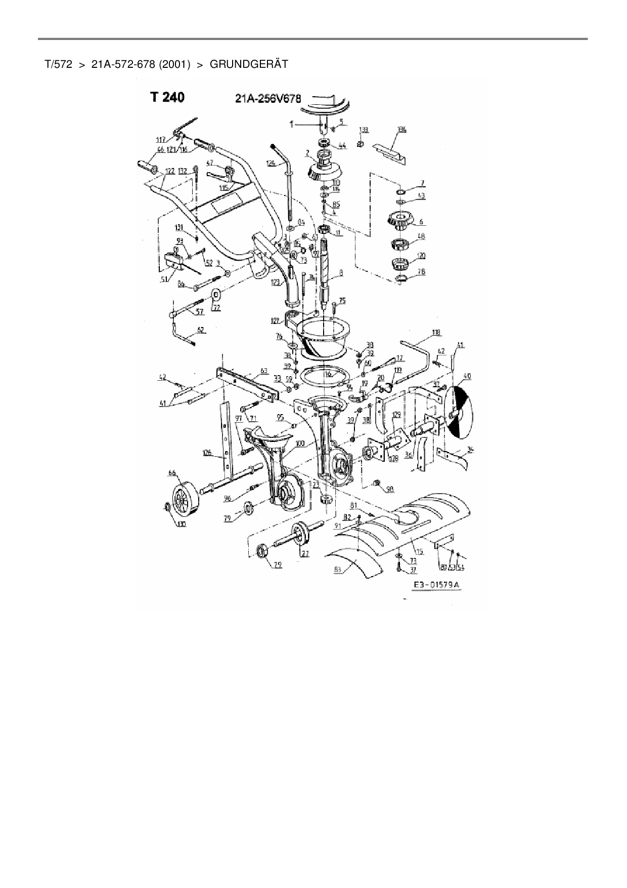 Zeichnung für MTD Motorhacke T/572 mit der Geräte-Artikelnr. 21A-572-678 ab Baujahr 2001: