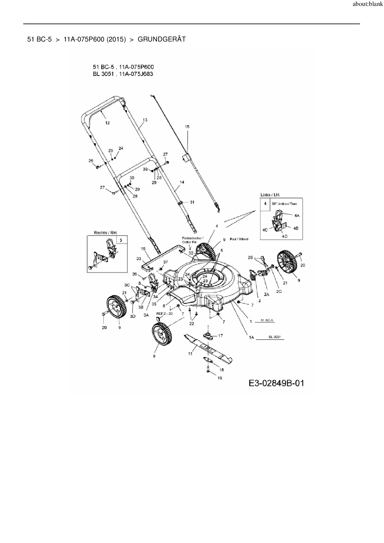 Zeichnung für MTD Motormäher 51 BC-5 mit der Geräte-Artikelnr. 11A-075P600 ab Baujahr 2015: