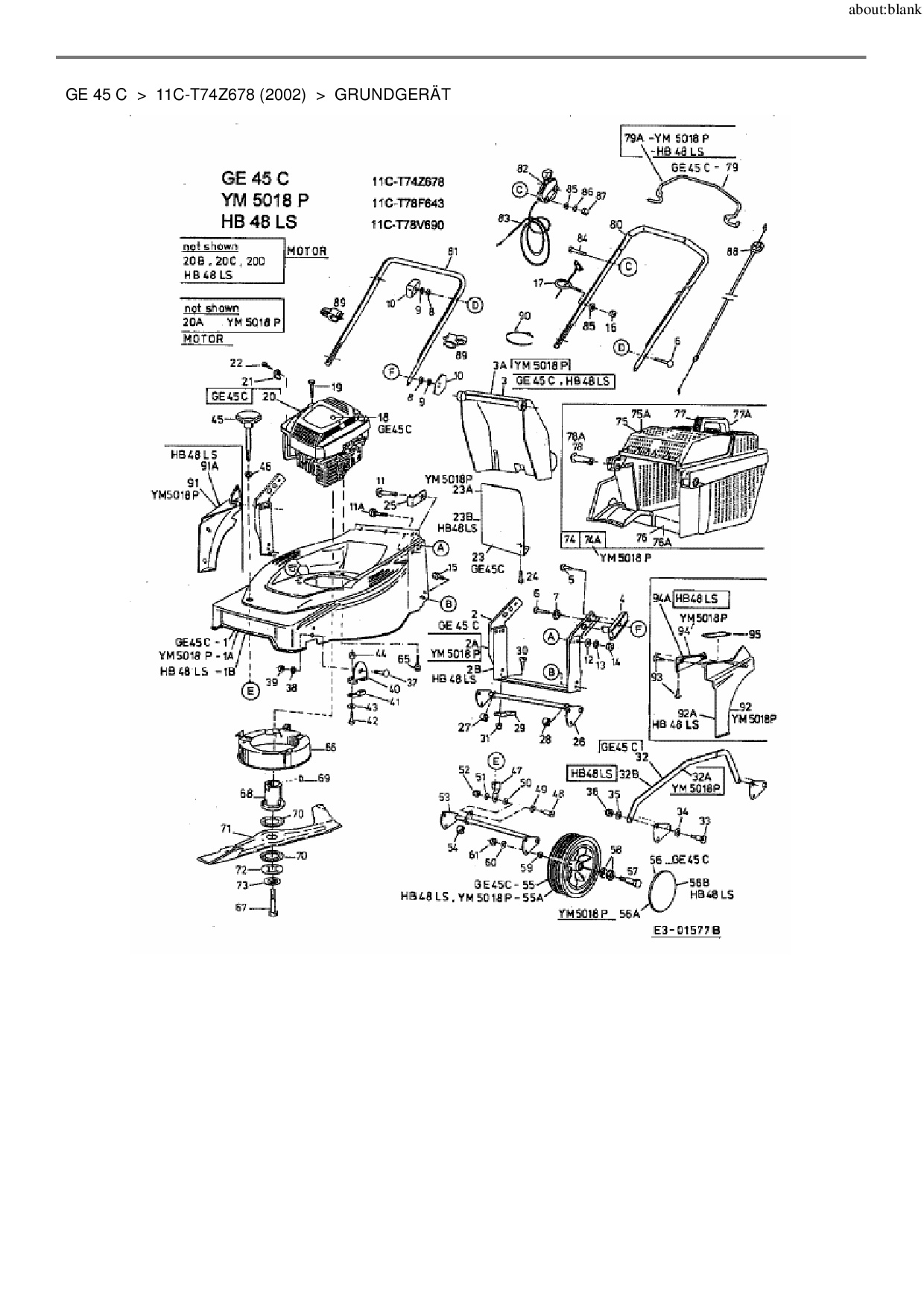 Ersatzteile für Motormäher MTD GE 45 C aus der Zeichnung Grundgerät: