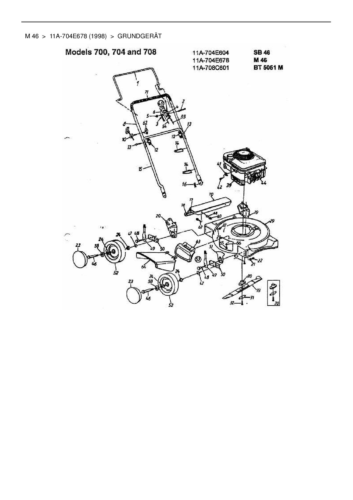 Ersatzteile für Motormäher MTD M 46 aus der Zeichnung Grundgerät: