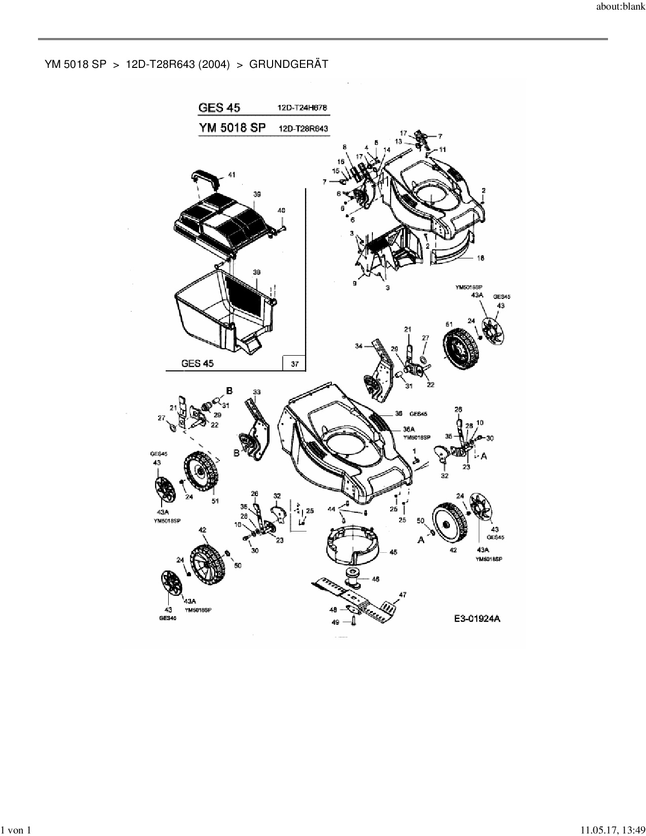 Ersatzteile für Motormäher mit Antrieb Yard-Man YM 5018 SP aus der Zeichnung Grundgerät: