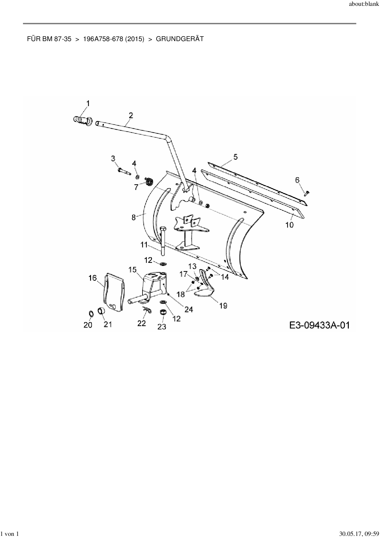 Zeichnung für Zubehör Balkenmäher Räumschild für BM 87-35 mit der Geräte-Artikelnr. 196A758-678 ab Baujahr 2015: