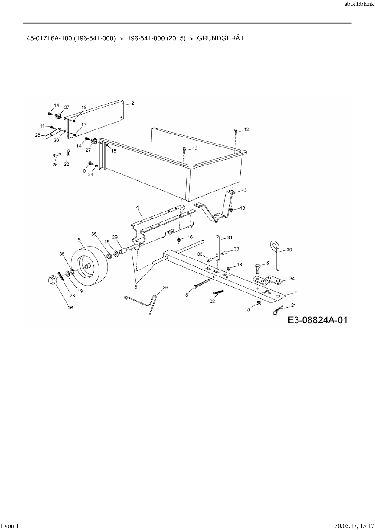Die Ersatzteil-Zeichnung für Anhänger Zubehör Garten- und Rasentraktoren 45-01716A-100 (196-541-000) als Download: