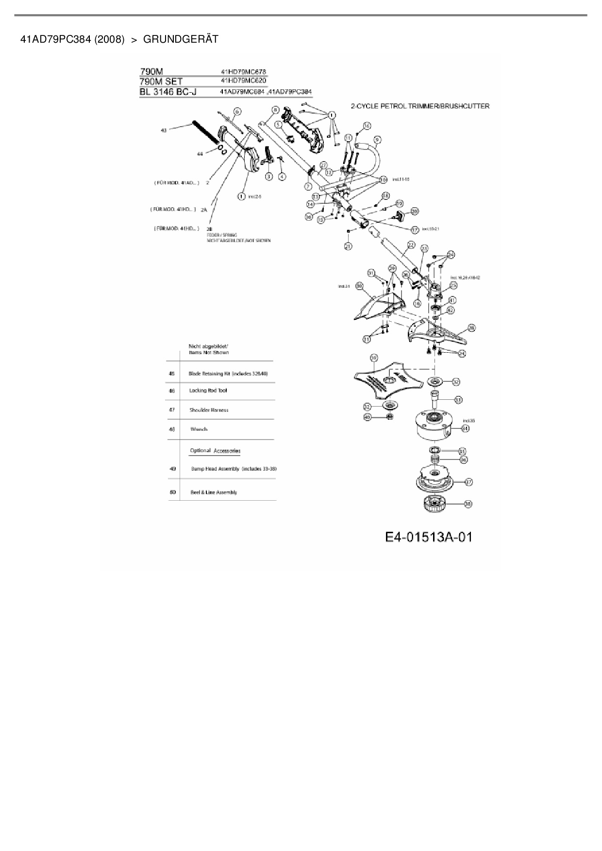 Zeichnung für Bolens Motorsense BL 3146 BC-J mit der Geräte-Artikelnr. 41AD79PC384 ab Baujahr 2008:
