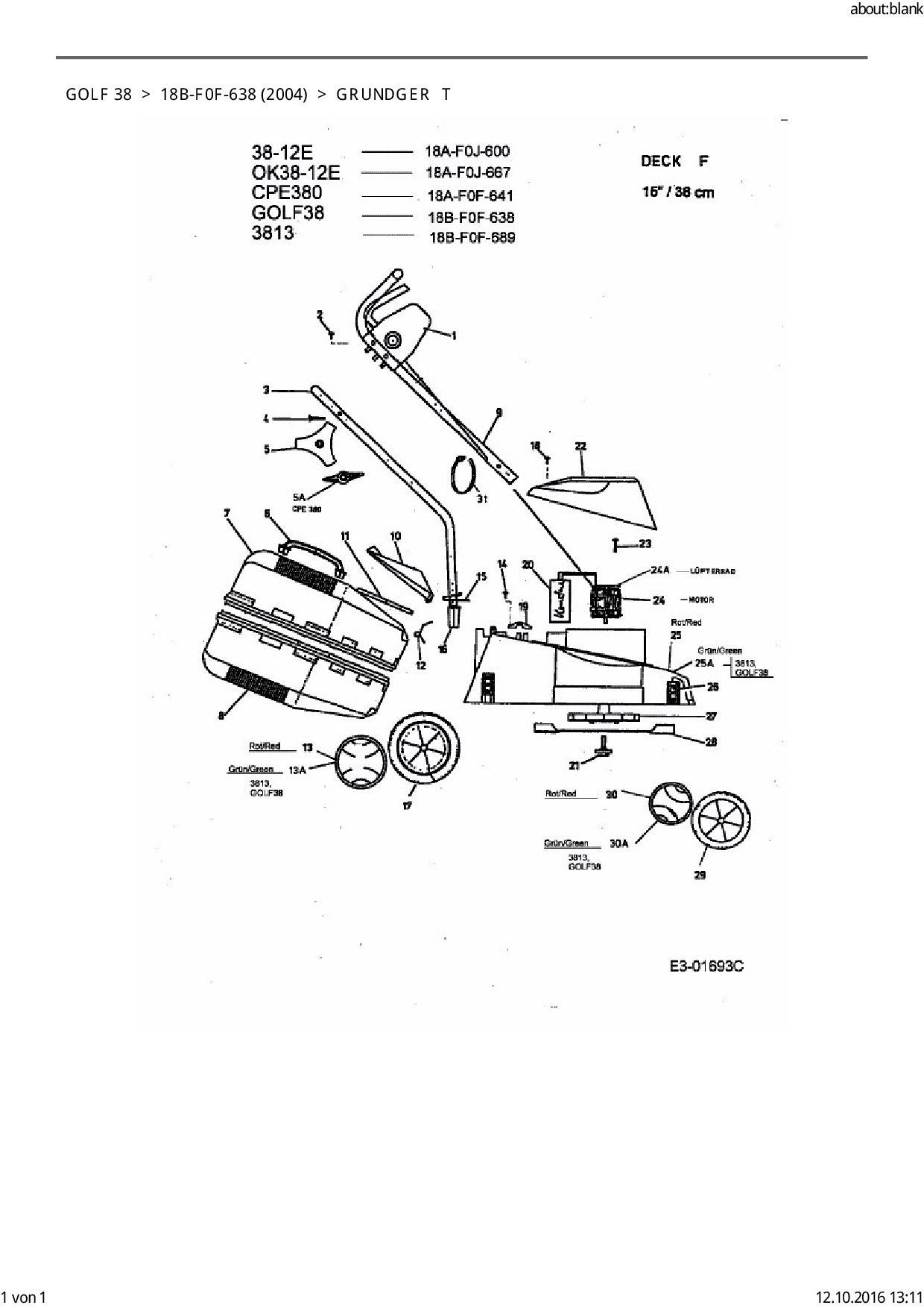 Ersatzteile für Elektromäher Golf Golf 38 aus der Zeichnung Grundgerät: