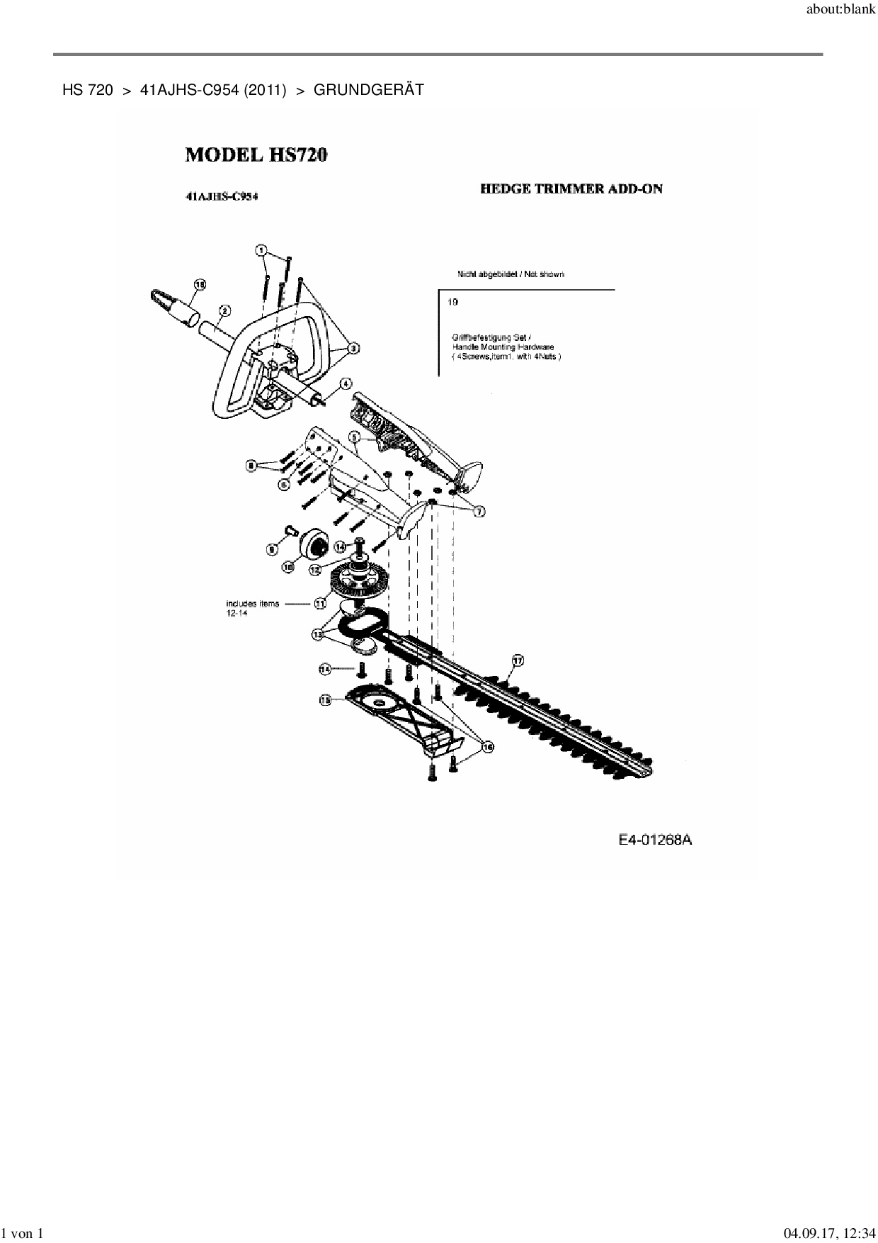 Die Ersatzteil-Zeichnung für Heckenschere Zubehör Motorsensen, Trimmer HS 720 als Download: