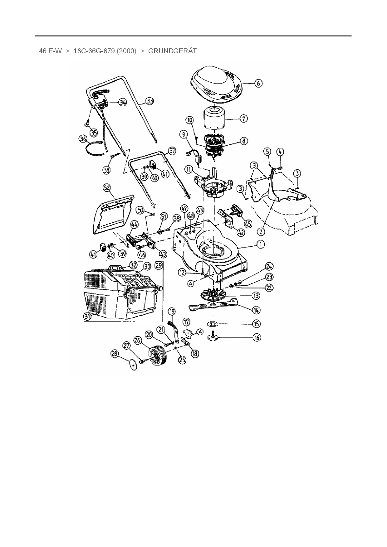 Ersatzteile für Elektromäher White 46 E-W aus der Zeichnung Grundgerät:
