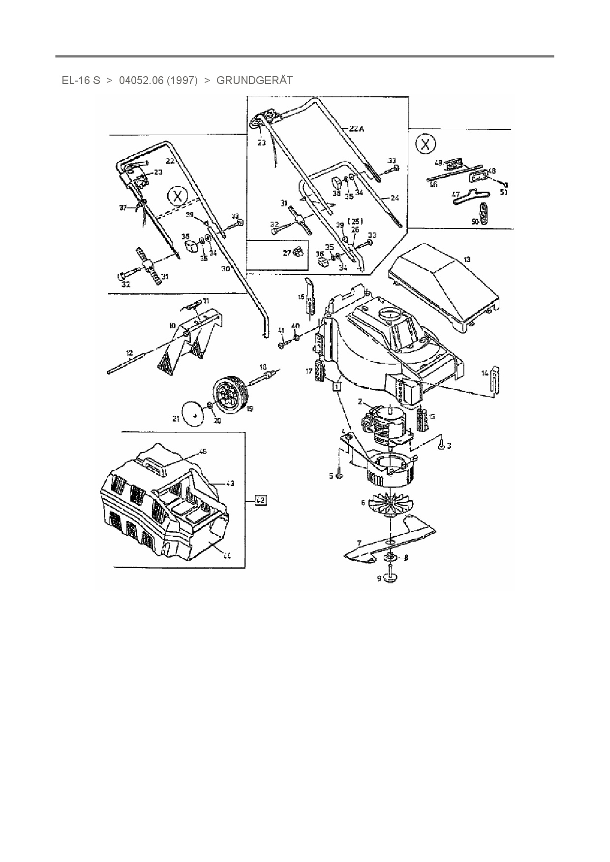 Ersatzteile für Elektromäher White EL-16 S aus der Zeichnung Grundgerät: