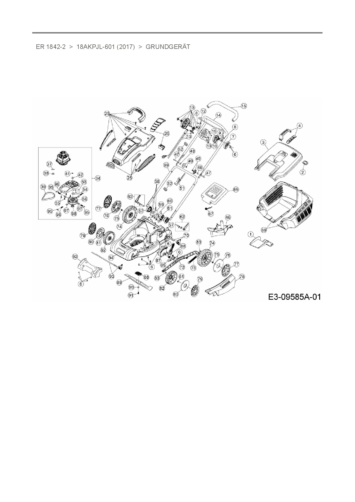 Ersatzteile für Elektromäher Wingart ER 1842-2 aus der Zeichnung Grundgerät: