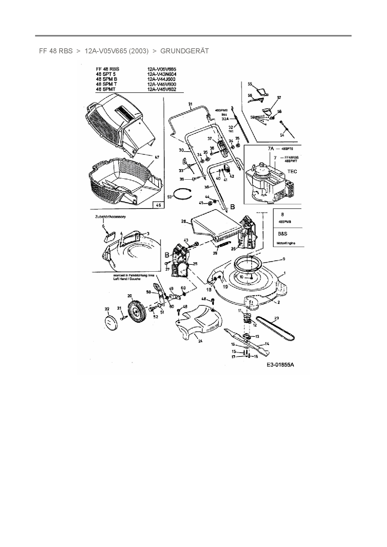 Ersatzteile für Motormäher mit Antrieb MTD FF 48 RBS aus der Zeichnung Grundgerät: