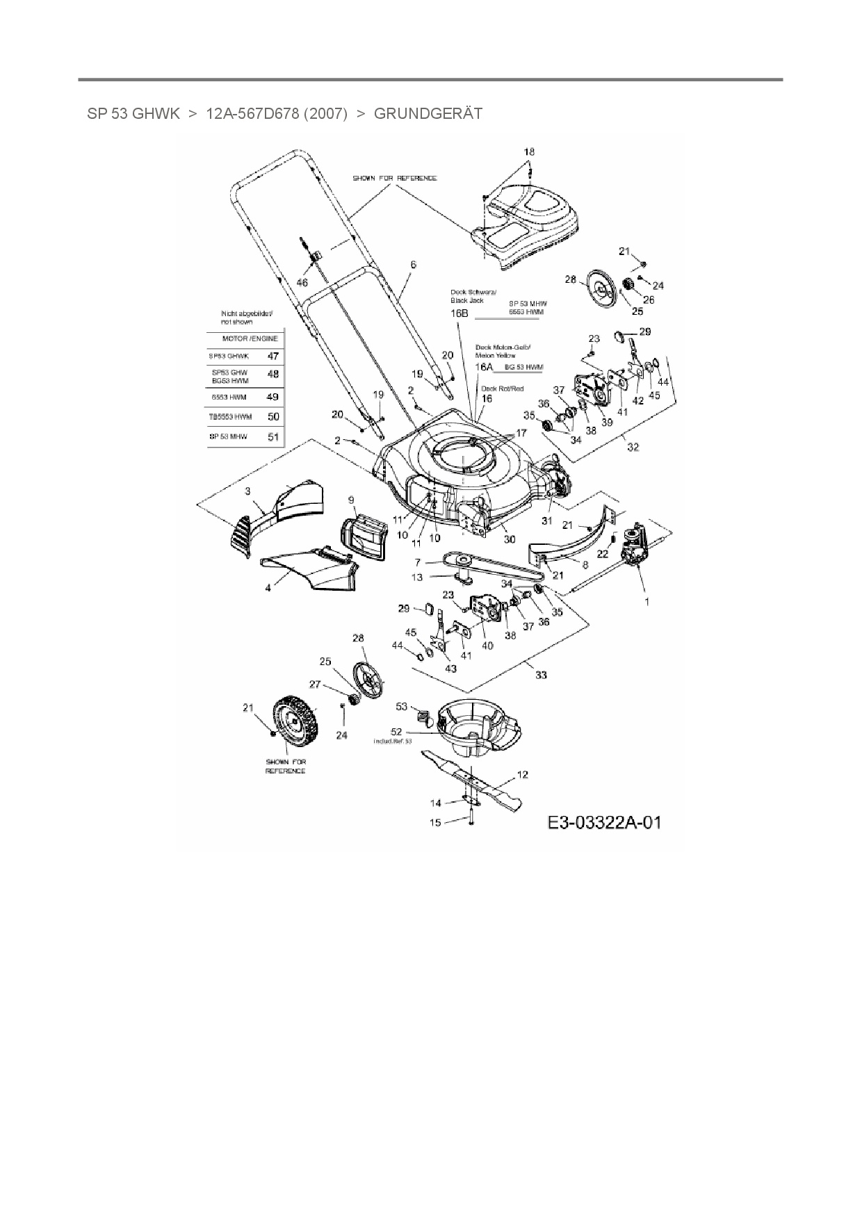 Ersatzteile für Motormäher mit Antrieb MTD SP 53 GHWK aus der Zeichnung Grundgerät:
