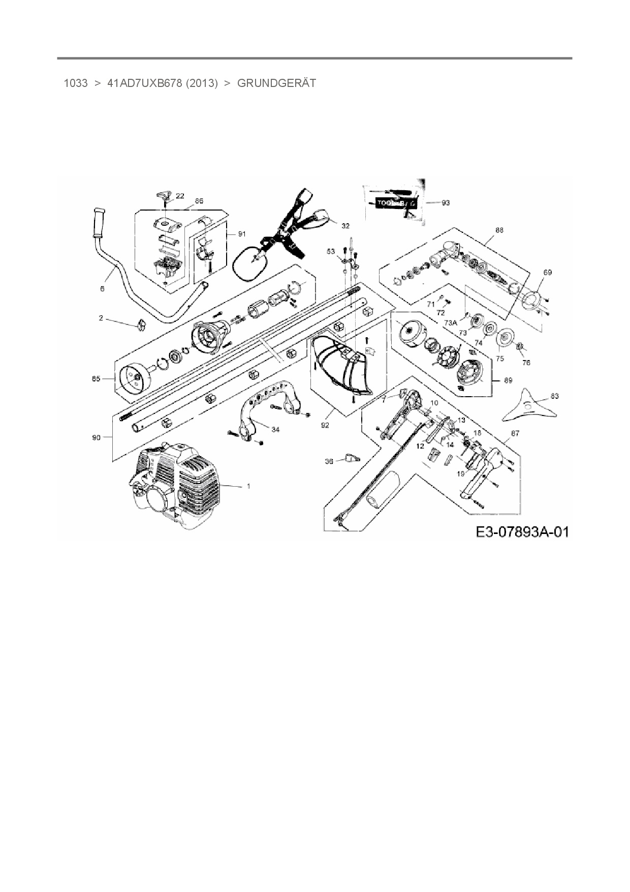 Zeichnung für MTD Motorsense 1033 mit der Geräte-Artikelnr. 41AD7UXB678 ab Baujahr 2013: