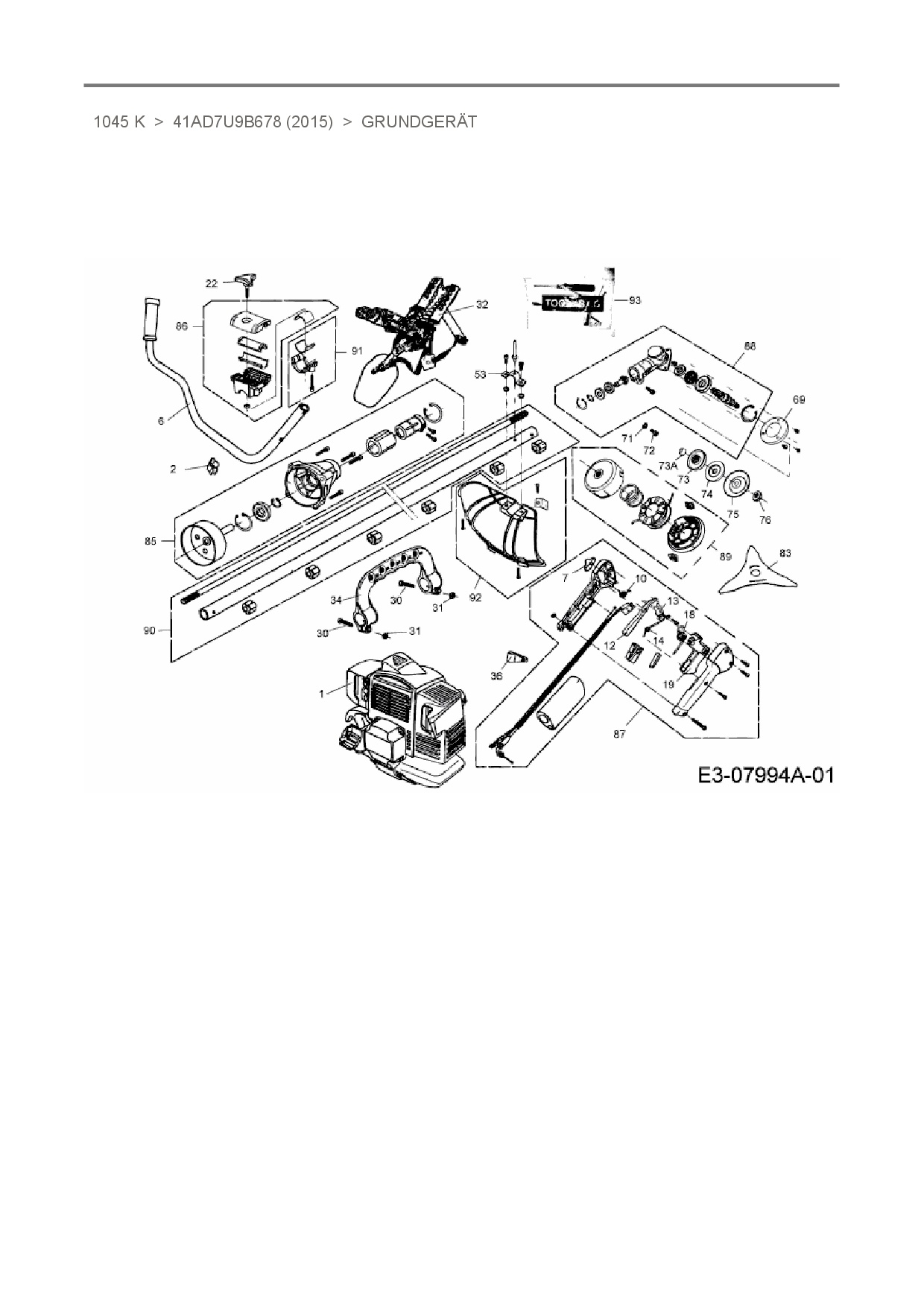 Ersatzteile für Motorsense MTD 1045 K aus der Zeichnung Grundgerät: