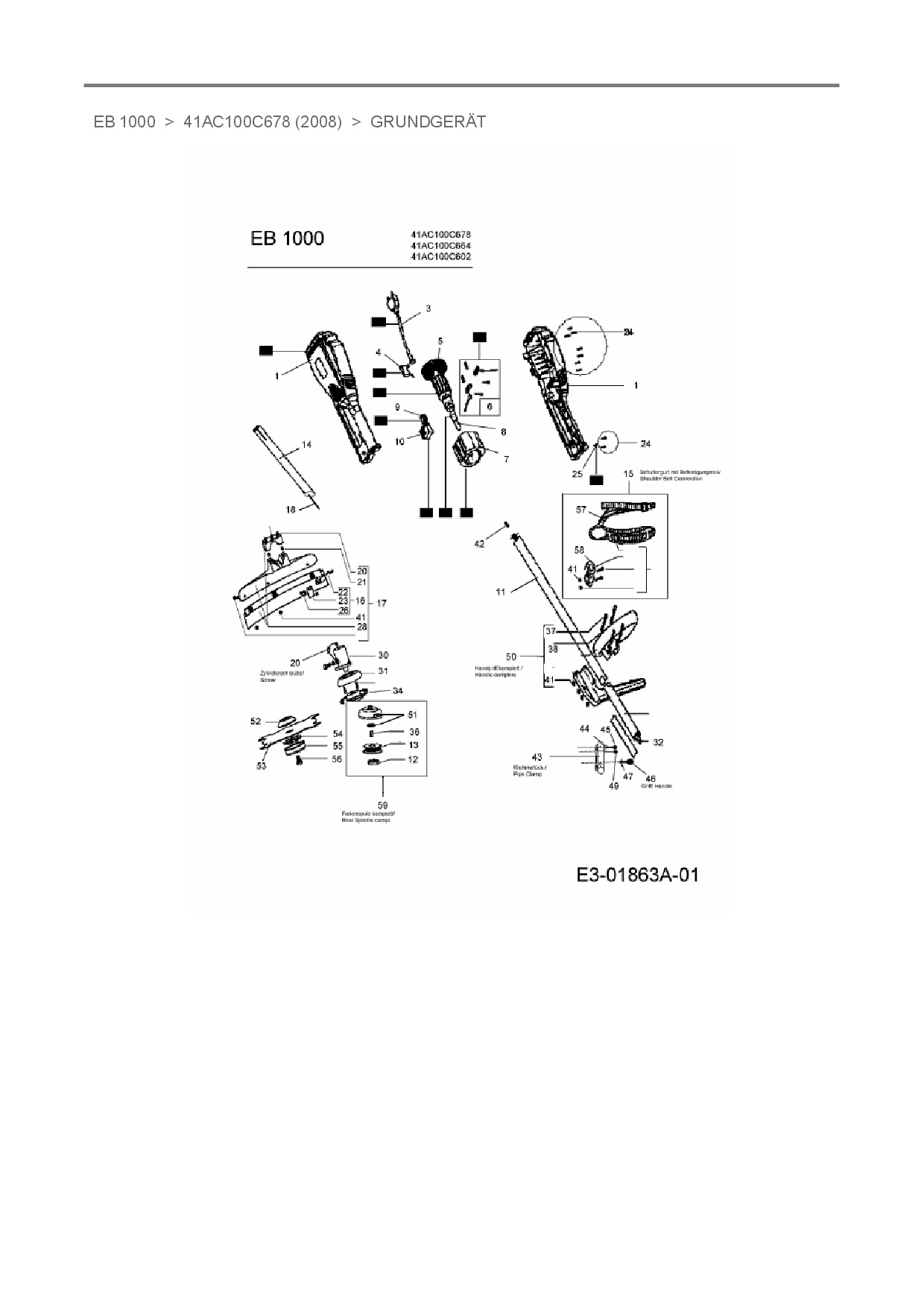 Ersatzteile für Elektrotrimmer MTD EB 1000 aus der Zeichnung Grundgerät: