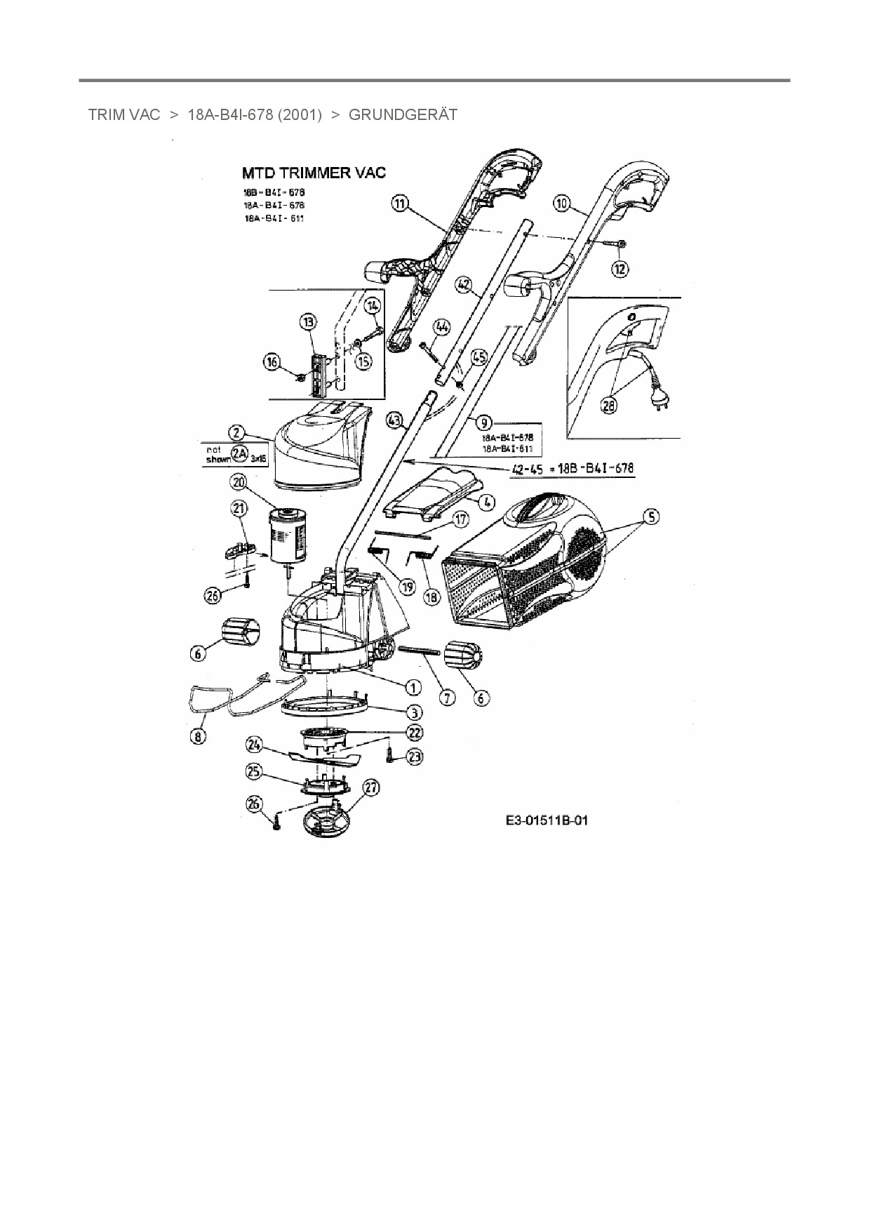 Ersatzteile für Elektrotrimmer MTD Trim Vac aus der Zeichnung Grundgerät: