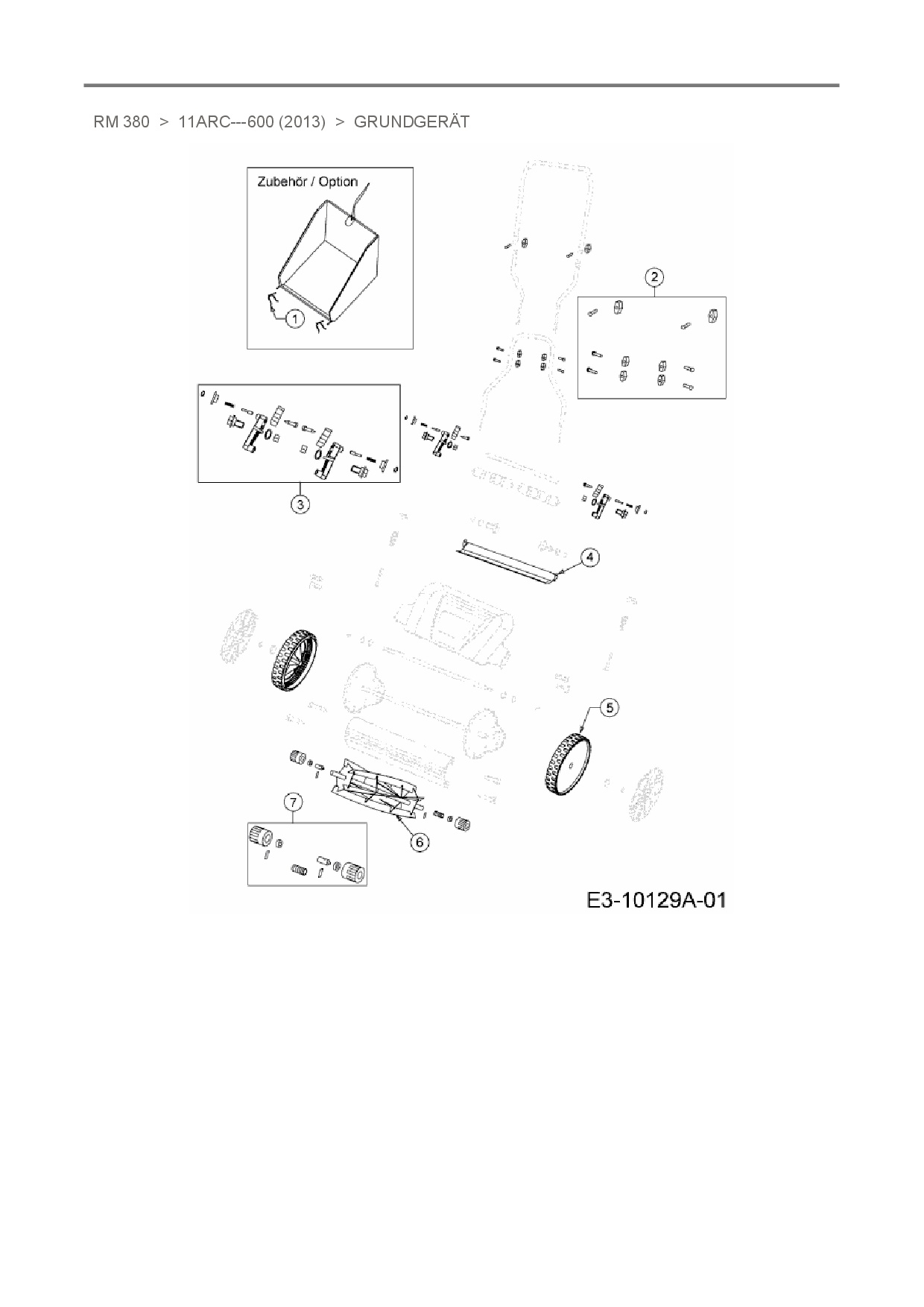 Zeichnung für MTD Spindelmäher RM 380 mit der Geräte-Artikelnr. 11ARC-600 ab Baujahr 2013: