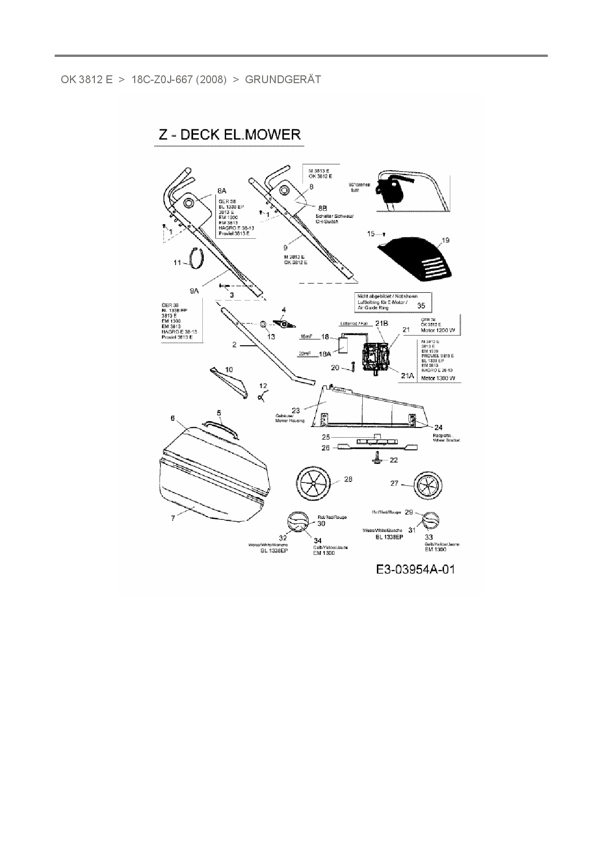 Ersatzteile für Elektromäher OK OK 3812 E aus der Zeichnung Grundgerät: