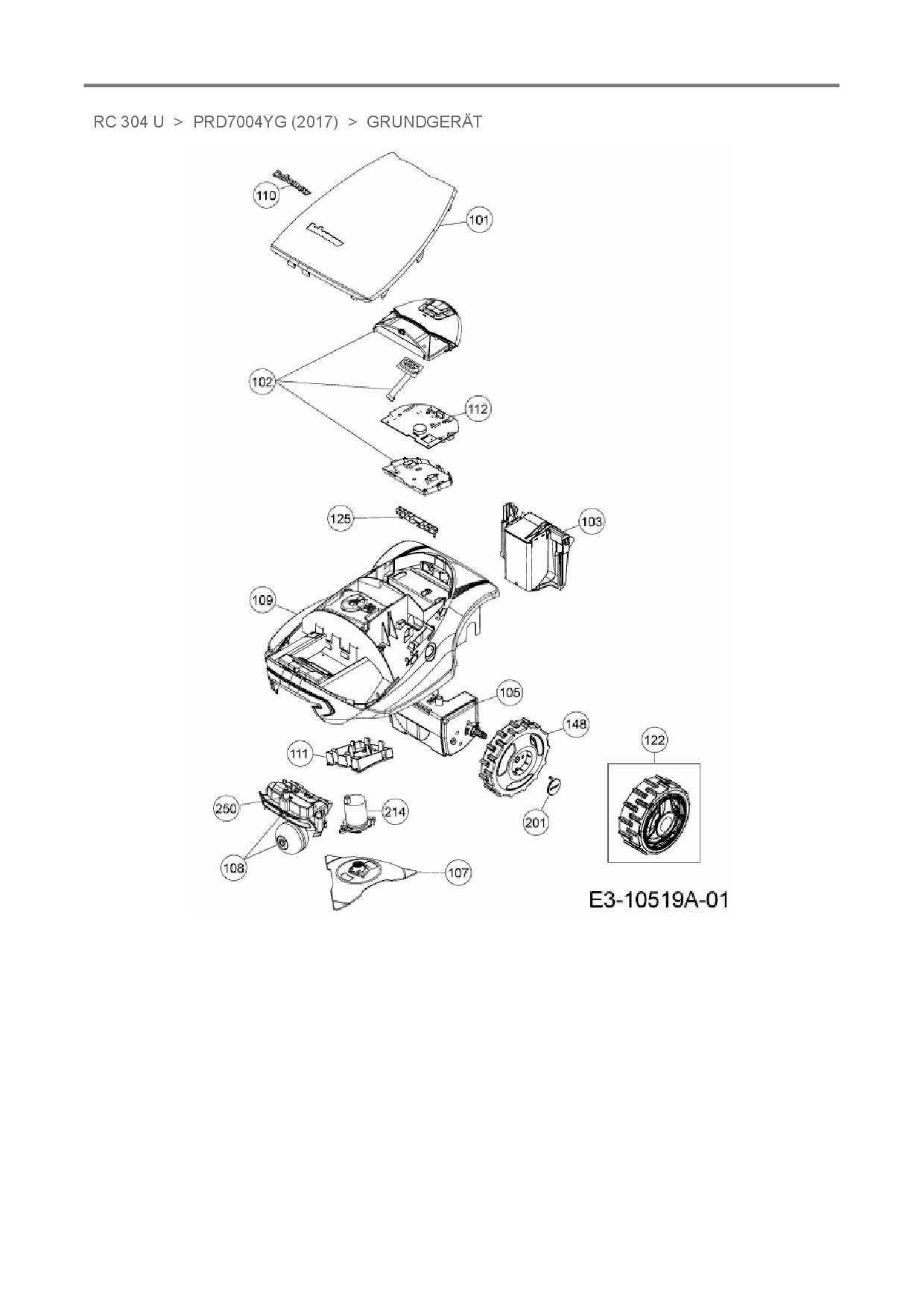Zeichnung für Robomow Mähroboter RC 304 U mit der Geräte-Artikelnr. PRD7004YG ab Baujahr 2017: