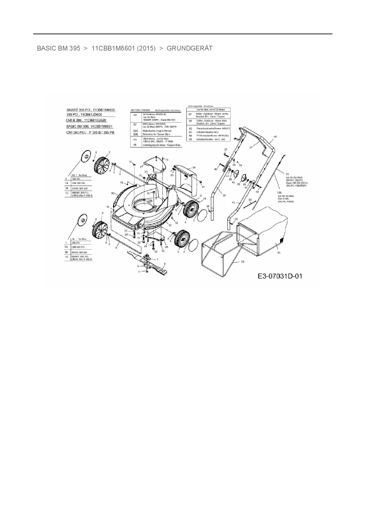 Zeichnung für Basic Motormäher Basic BM 395 mit der Geräte-Artikelnr. 11CBB1M8601 ab Baujahr 2015: