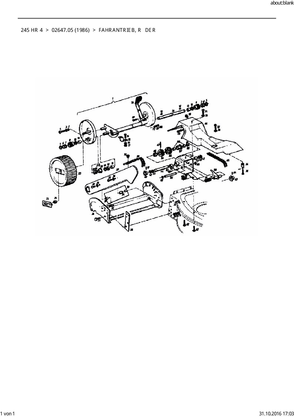 Die Ersatzteil-Zeichnung für Motormäher mit Antrieb Golf 245 HR 4 als Download: