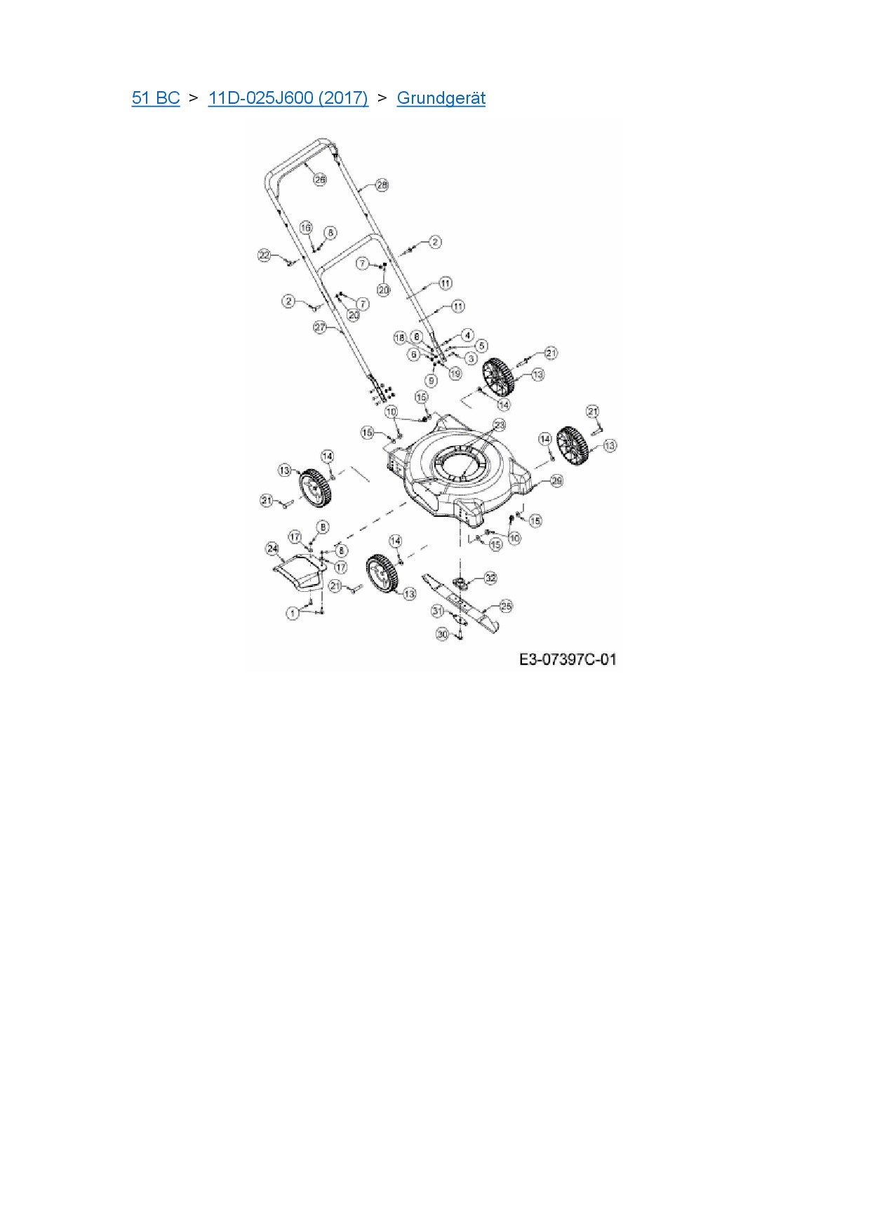 Zeichnung für MTD Motormäher 51 BC mit der Geräte-Artikelnr. 11D-025J600 ab Baujahr 2017: