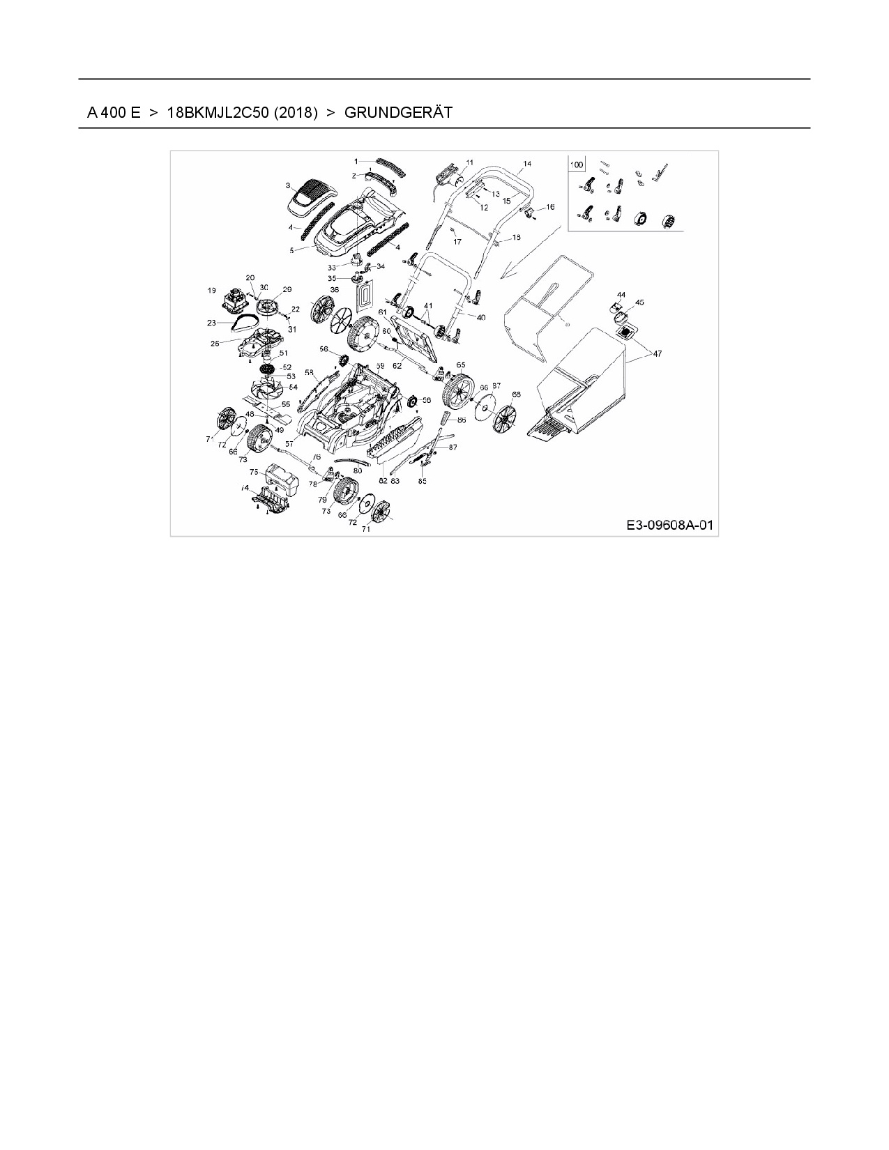 Zeichnung für Wolf-Garten Elektromäher A 400 E mit der Geräte-Artikelnr. 18BKMJL2C50 ab Baujahr 2018: