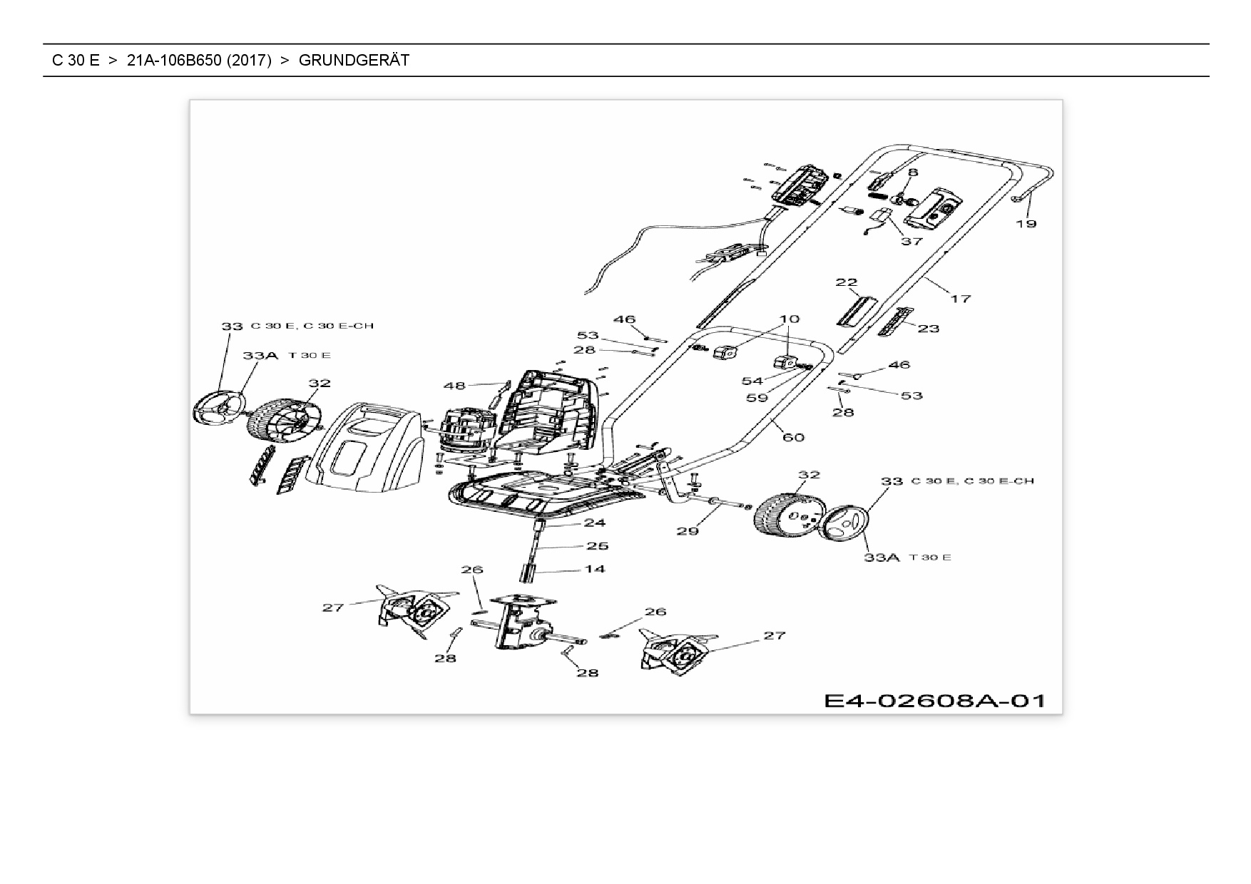 Ersatzteile für Motorhacke Wolf-Garten C 30 E aus der Zeichnung Grundgerät: