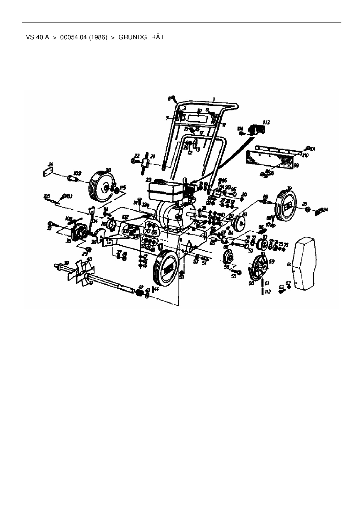 Ersatzteile für Motorvertikutierer Gutbrod VS 40 A aus der Zeichnung Grundgerät: