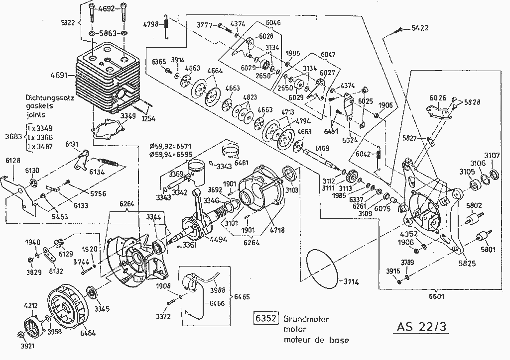 Hier finden Sie alle Ersatzteile von AS-Motor Allmäher AS 22/3 ab FNr. 0120644001 aus dem Zeichnungsblatt Grundmotor (1):