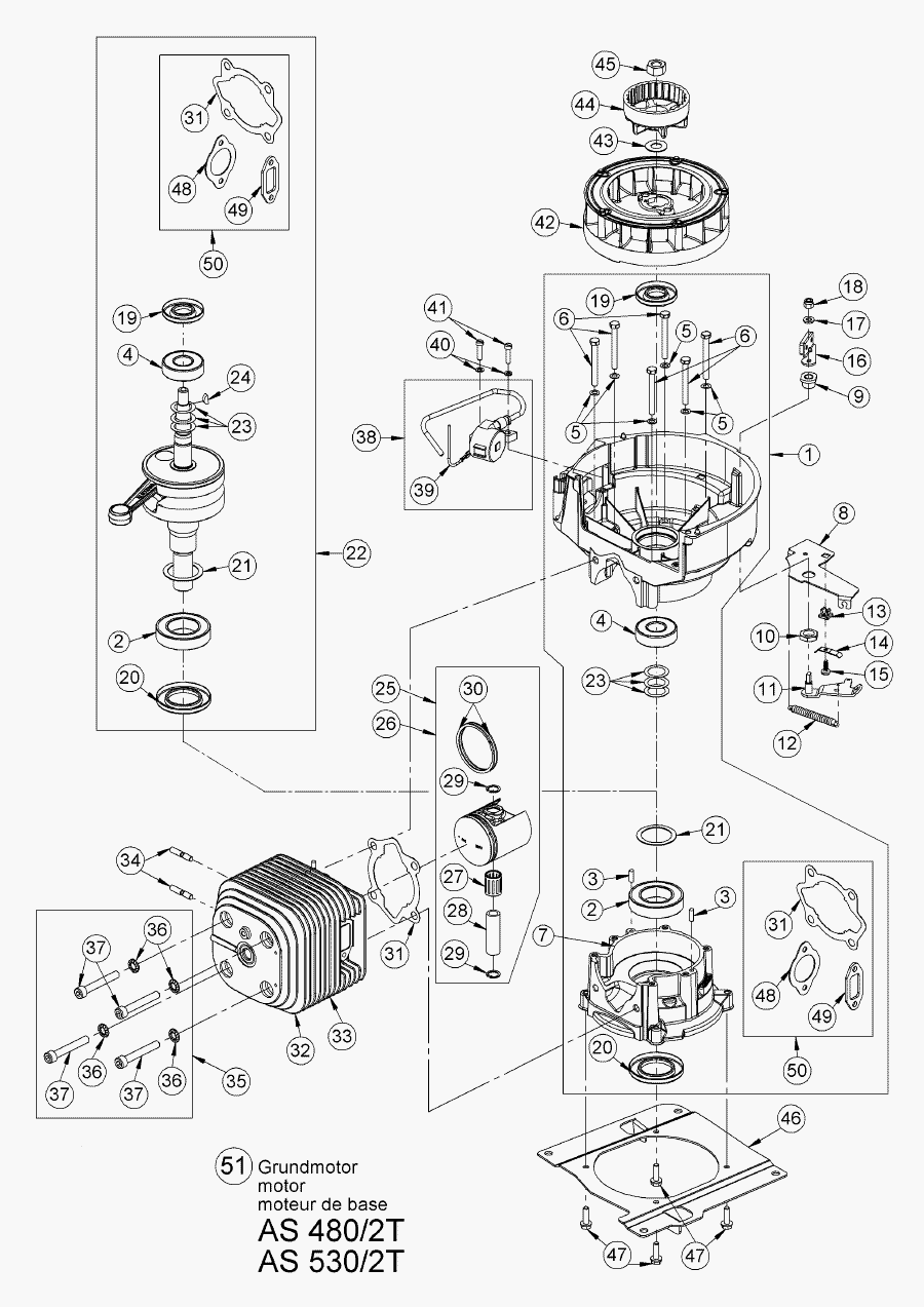 Hier finden Sie alle Ersatzteile von AS-Motor Profi-Rasenmäher AS 480/2T ab FNr. 018908050001 aus dem Zeichnungsblatt Grundmotor: