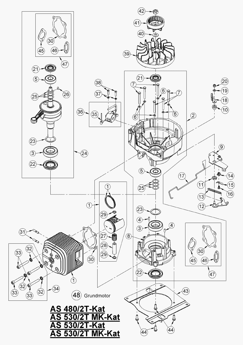 Hier finden Sie alle Ersatzteile von AS-Motor Profi-Rasenmäher AS 530/2T MK-Kat ab FNr. 020608050001 aus dem Zeichnungsblatt Grundmotor: