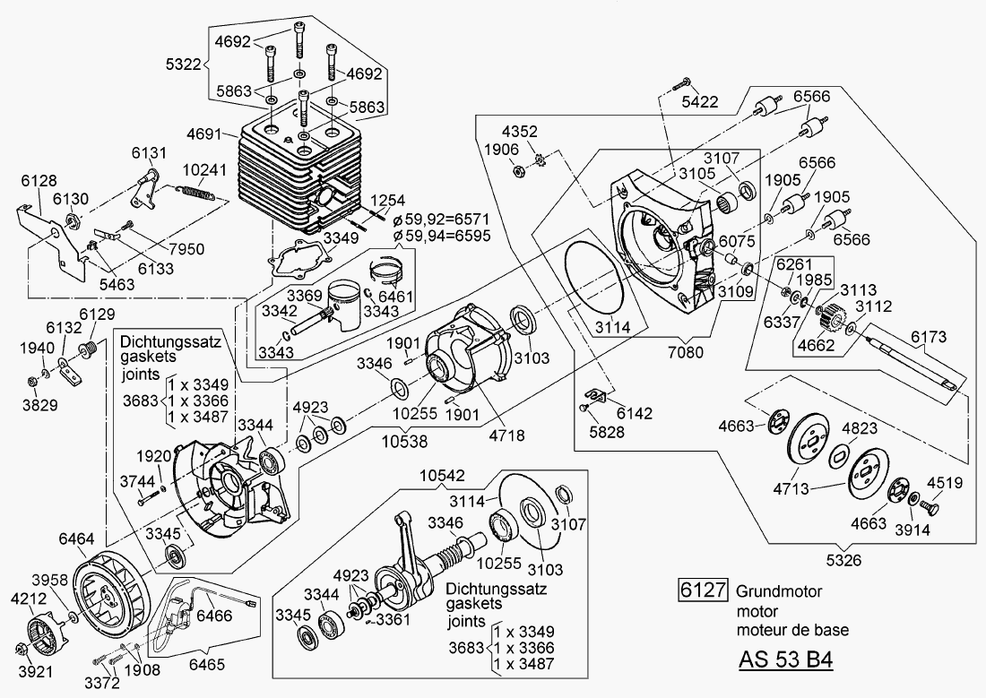 Hier finden Sie alle Ersatzteile von AS-Motor Profi-Rasenmäher AS 53 B4 ab FNr. 007906101001 aus dem Zeichnungsblatt Grundmotor: