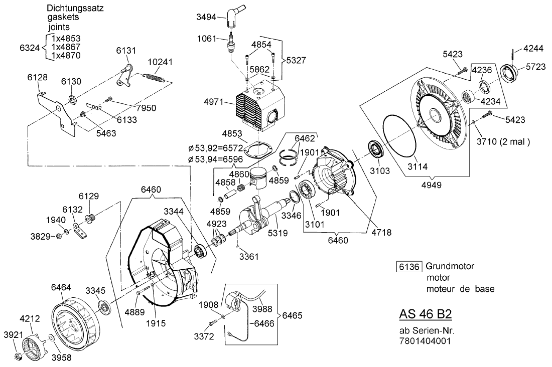 Zeichnung von AS-Motor Profi-Rasenmäher AS 46 B2 ab FNr. 007801404001: