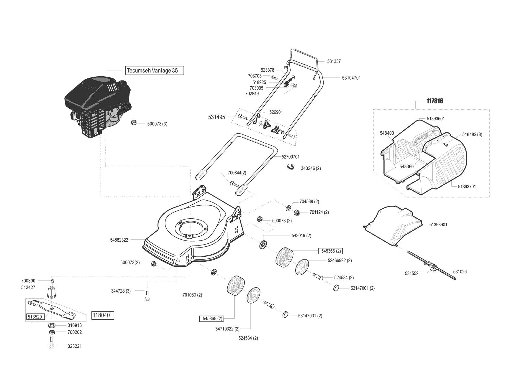 Zeichnungen von Dehner Benzinrasenmäher Gute Wahl 3.5 B mit der Geräte-Artikelnr. 118419: