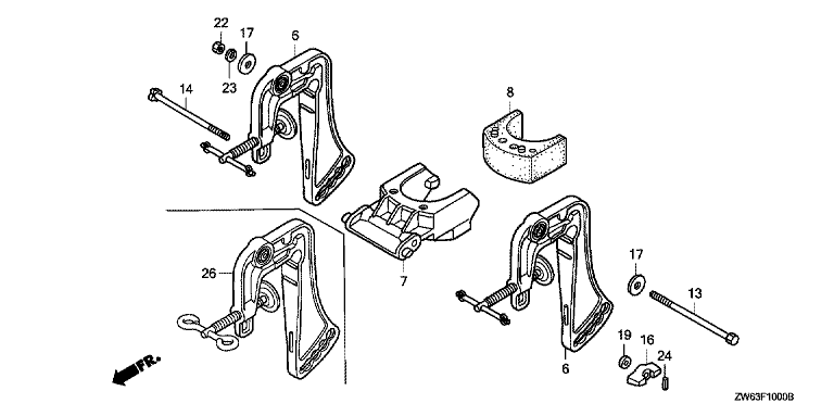 Ersatzteile für Honda Außenbordmotoren BF2D2 SCHC (SCHC) Baugruppe HECKHALTERUNG