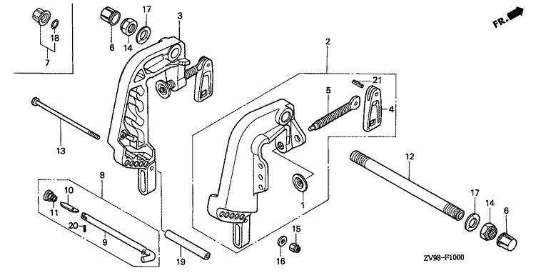 Ersatzteile für Honda Außenbordmotoren BF30A1 LRSA (LRSA) Baugruppe HECKHALTERUNG