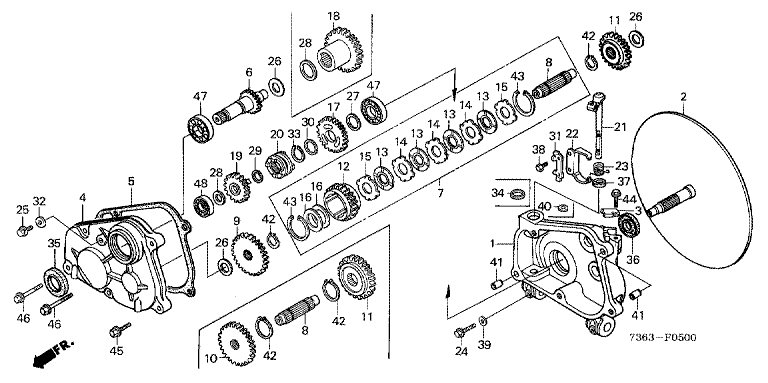 Ersatzteile für Honda Schneefräsen HS55K1 WH (WH) Baugruppe HILFSGETRIEBEGEHAEUSE