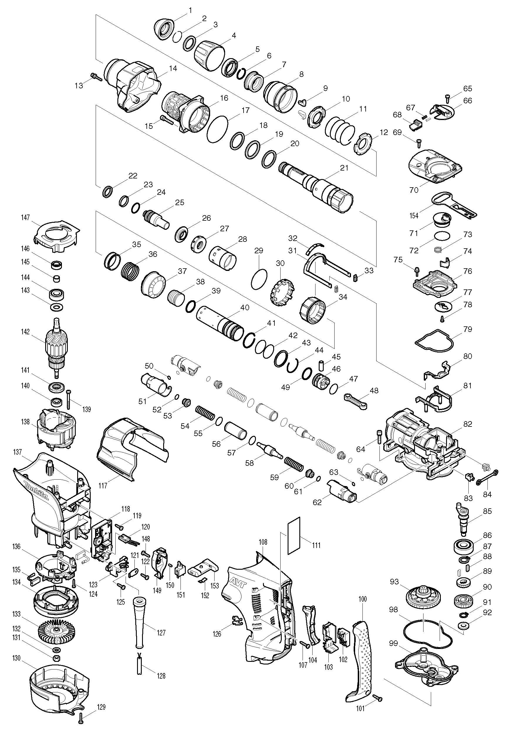 Folgende Ersatzteile für Makita HR4510C - Bohrhammer können Sie hier bestellen: