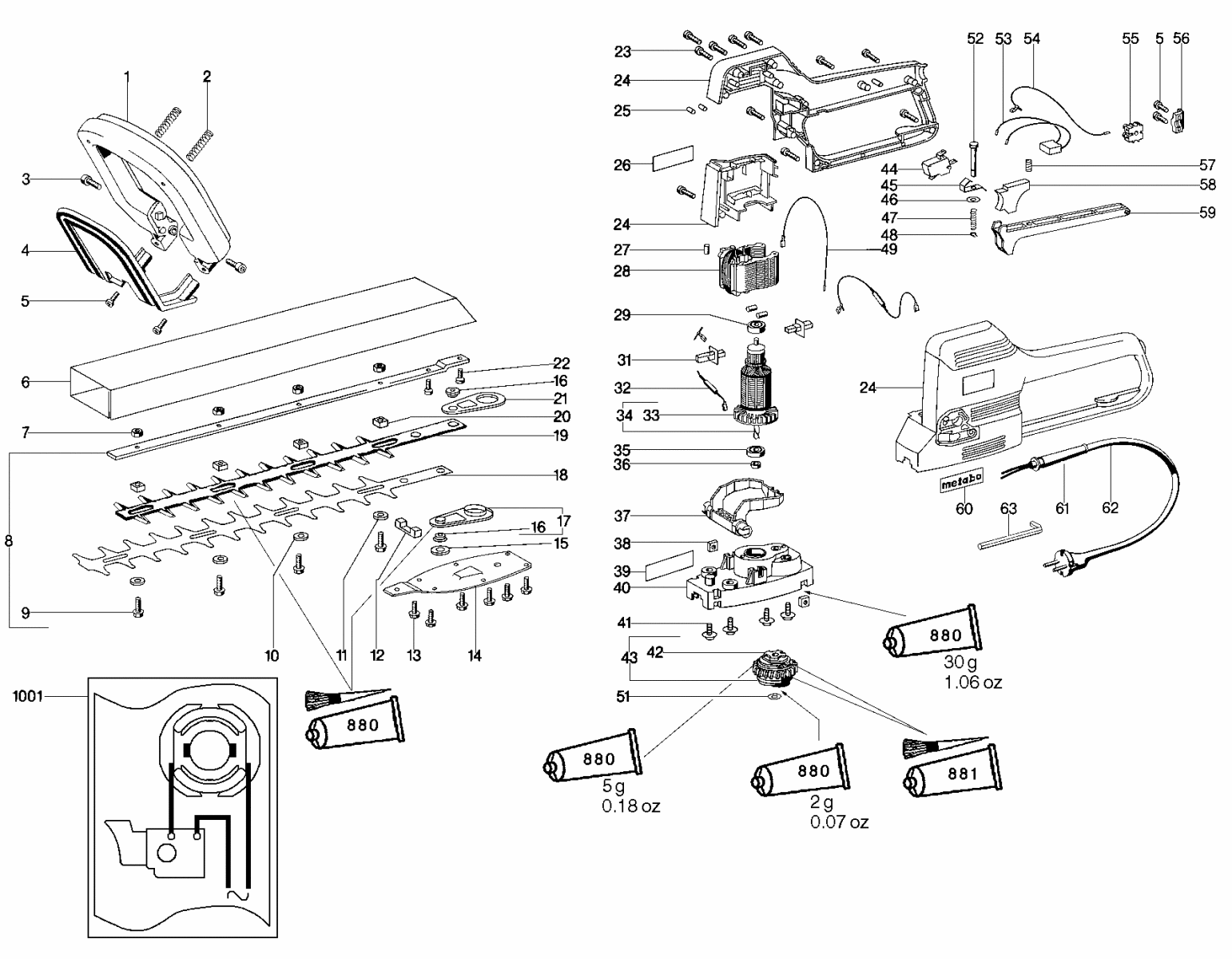 Zeichnung 1 Sollten Sie Fragen zu einem Ersatzteil von Metabo HS 8140 S Heckenschere 608140000 haben, können Sie uns gerne eine E-Mail (mit einem Foto vom Typenschild Ihres Gerätes) schreiben oder eine Ersatzteilanfrage stellen.