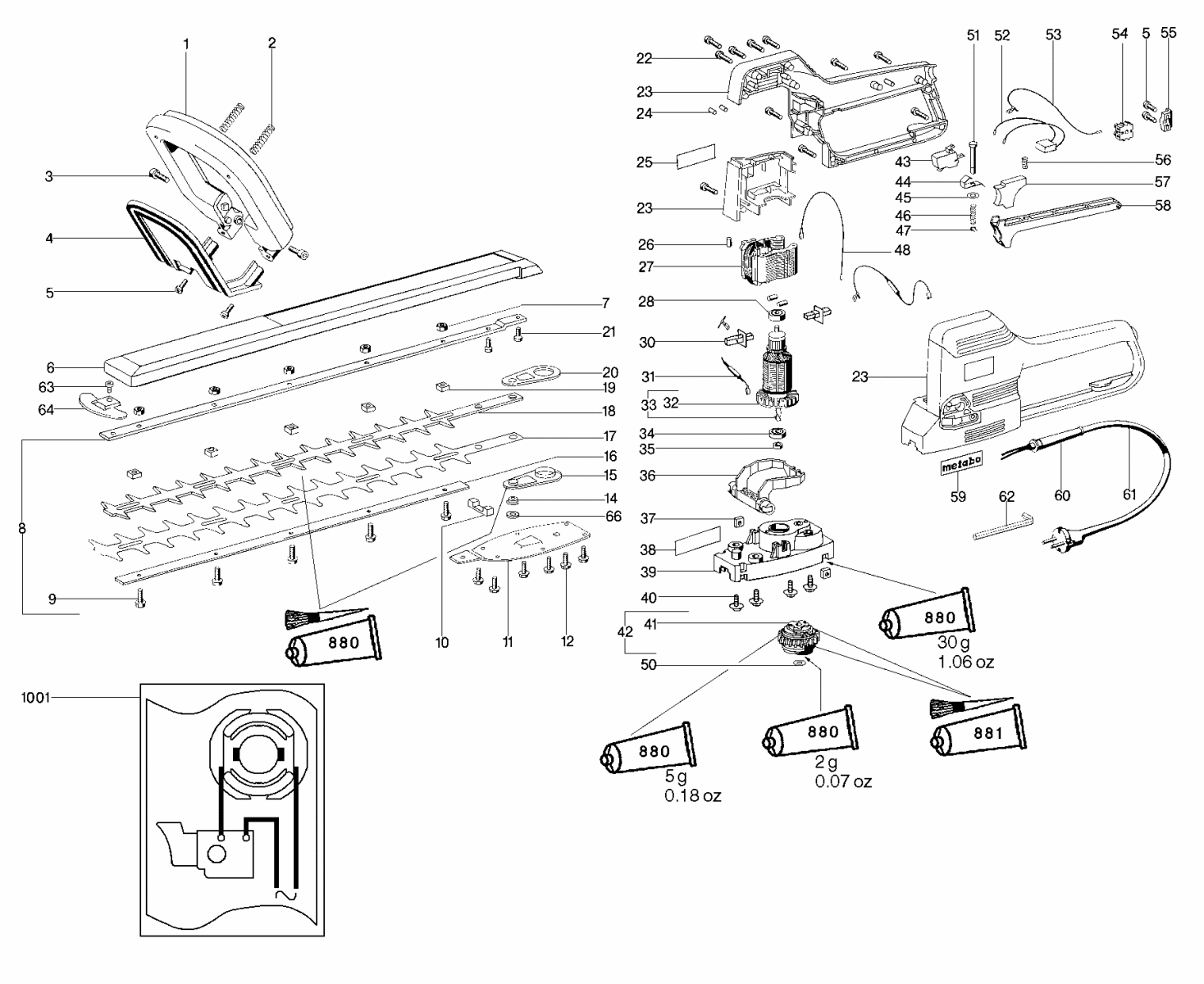 Zeichnung 1 Sollten Sie Fragen zu einem Ersatzteil von Metabo HS 8155 S Heckenschere 608155002 haben, können Sie uns gerne eine E-Mail (mit einem Foto vom Typenschild Ihres Gerätes) schreiben oder eine Ersatzteilanfrage stellen.