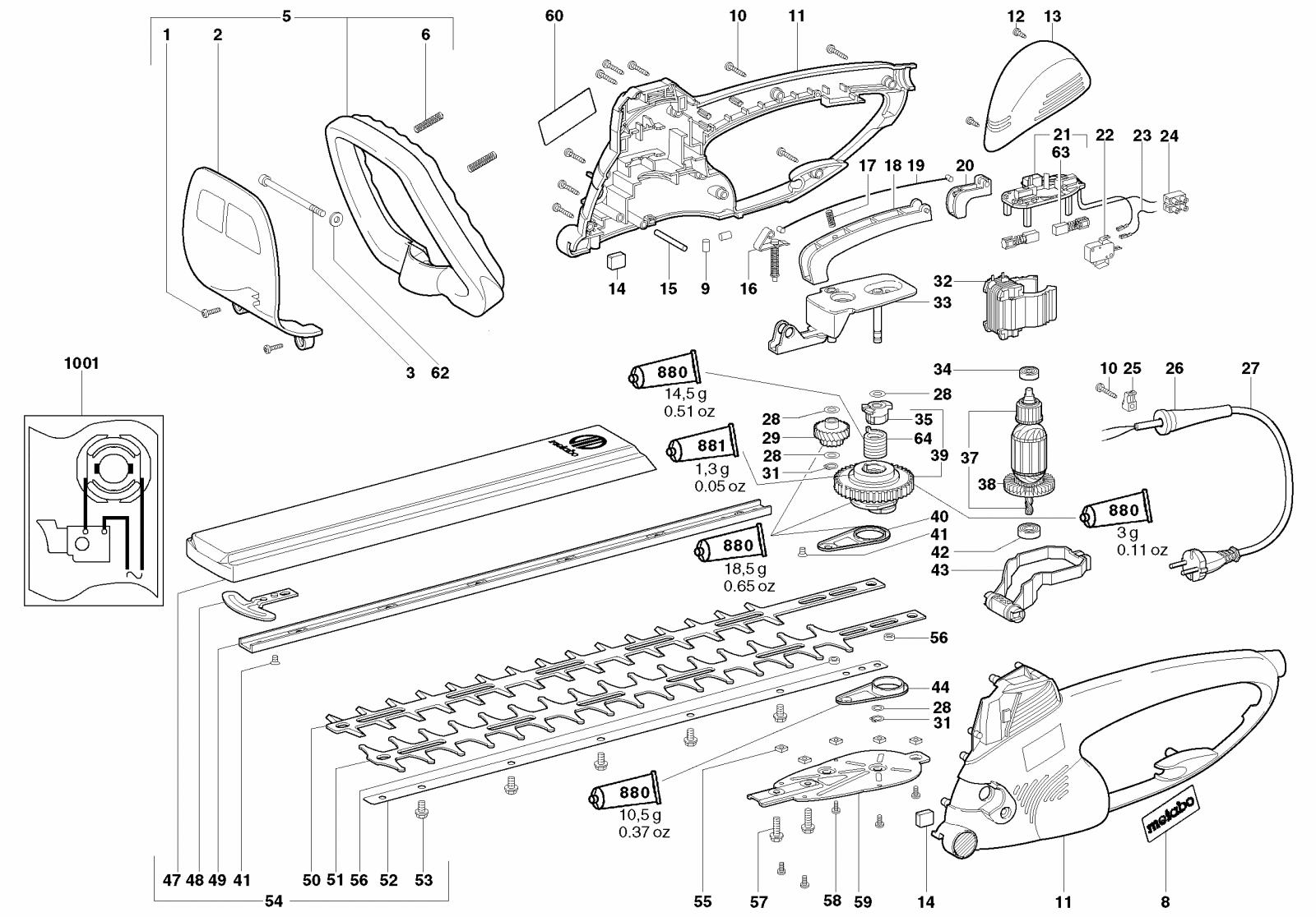 Zeichnung 1 Sollten Sie Fragen zu einem Ersatzteil von Metabo HS 8455 S Heckenschere 608455000 haben, können Sie uns gerne eine E-Mail (mit einem Foto vom Typenschild Ihres Gerätes) schreiben oder eine Ersatzteilanfrage stellen.